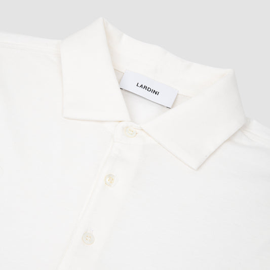 Cotton and Silk Long Sleeve Polo White