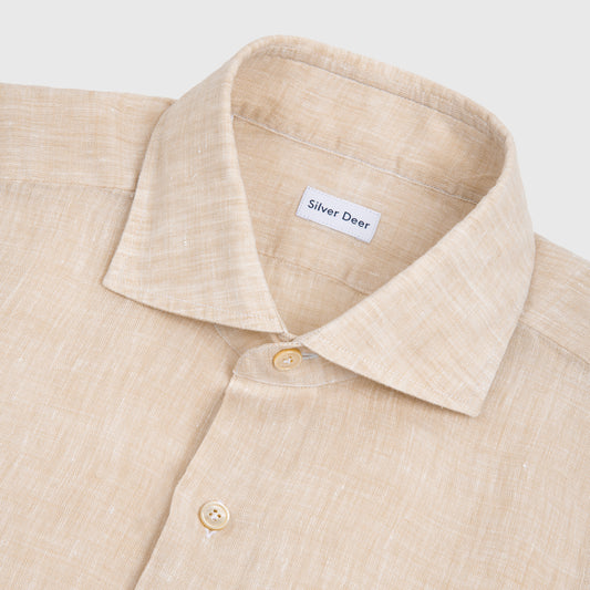 - 50%Solid Linen Shirt Beige