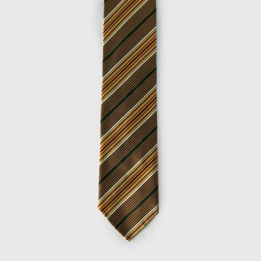 Red, Orange, Ochre and Green Striped Silk & Cotton Tie