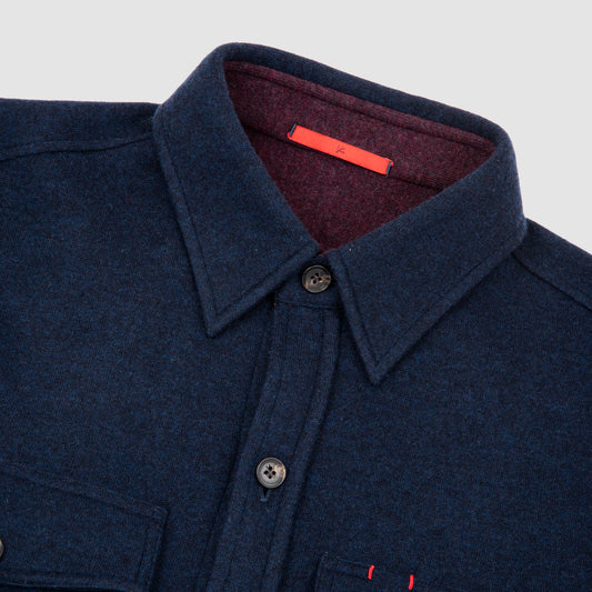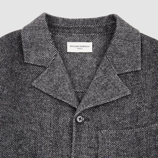 Double Face Herringbone Wool Overshirt - Mid Grey