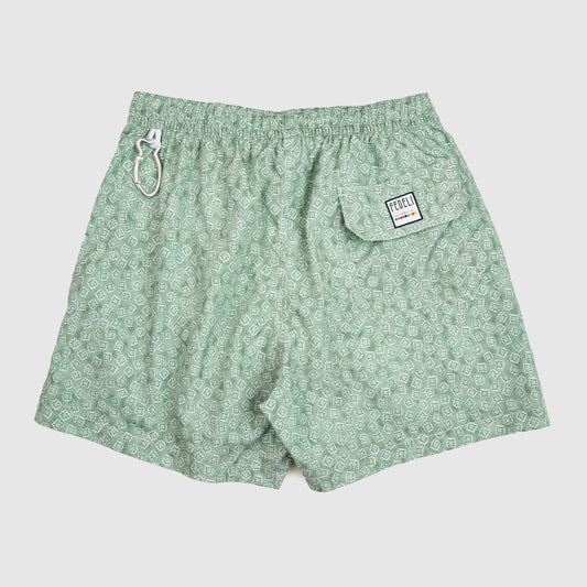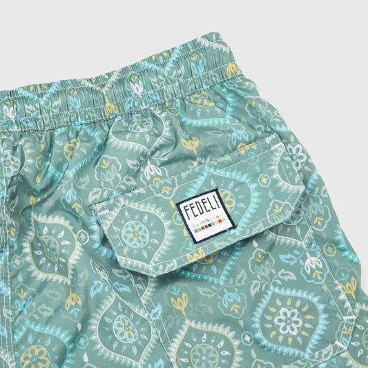 Madeira Printed Swim Trunk Hindu Floral Pattern Green