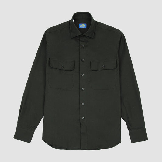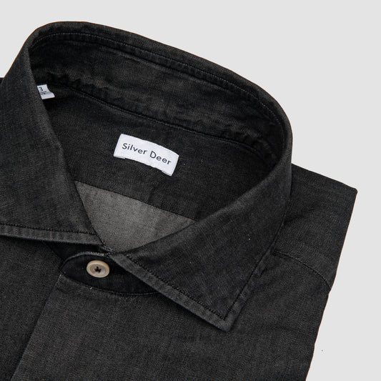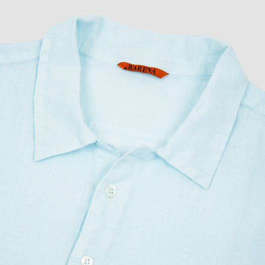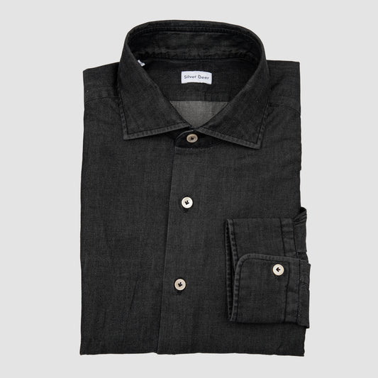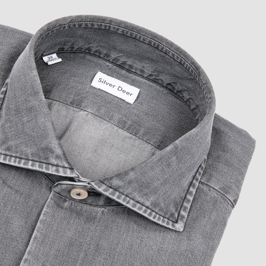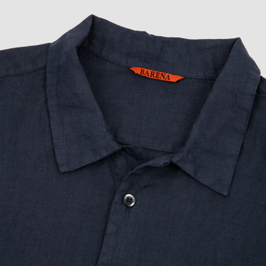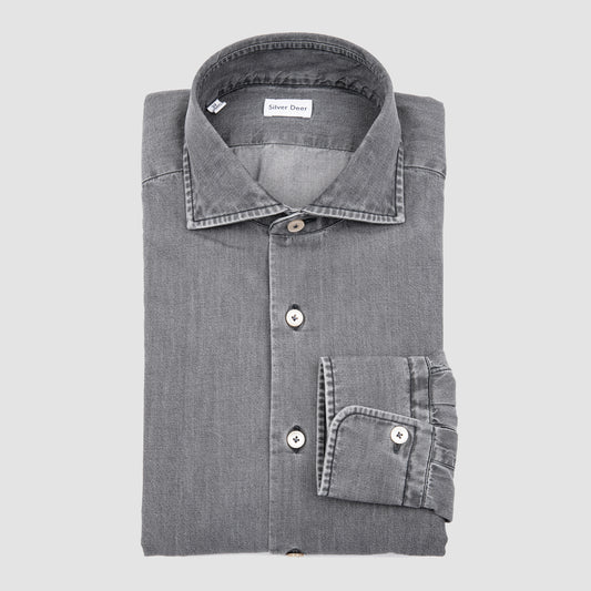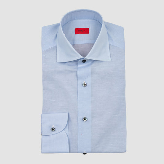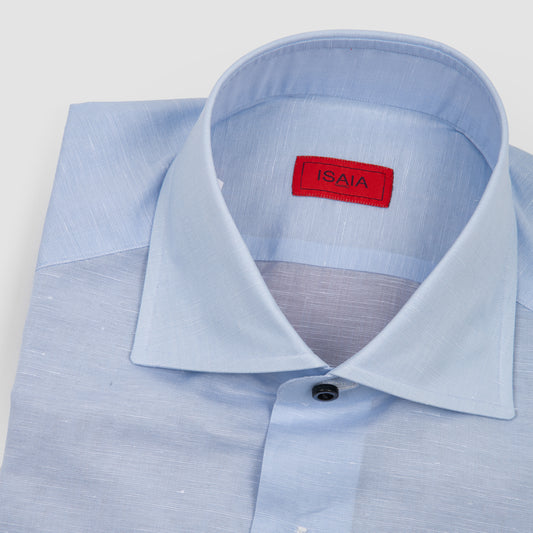 Denim Herringbone Luigi Collar Gaeta Fit Sport Shirt - Blue