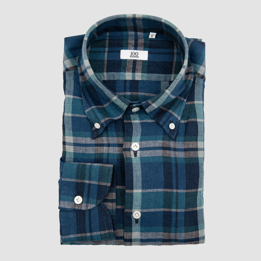 9oz Selvedge Indigo Check Flannel Western Shirt Yellow