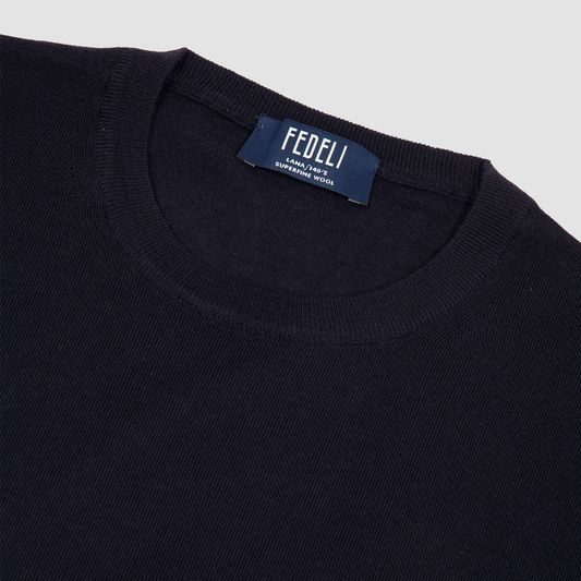 Crew Neck Sweater Merino Wool Navy