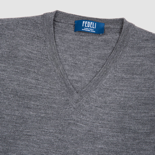 Wool V Neck Sweater Dark Grey