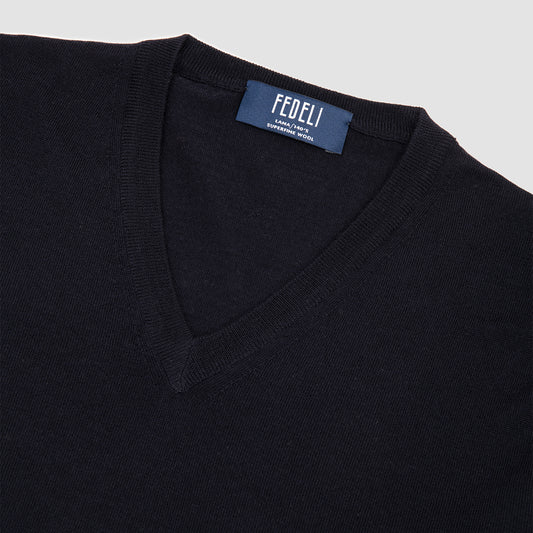 Wool V-Neck Sweater Navy