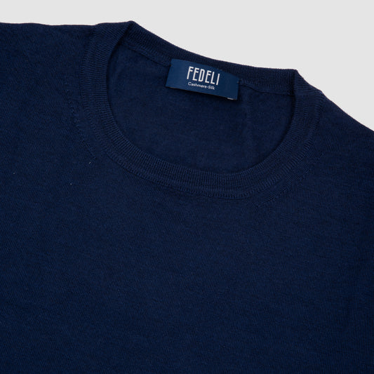 Cashmere Silk Crewneck Sweater Blue