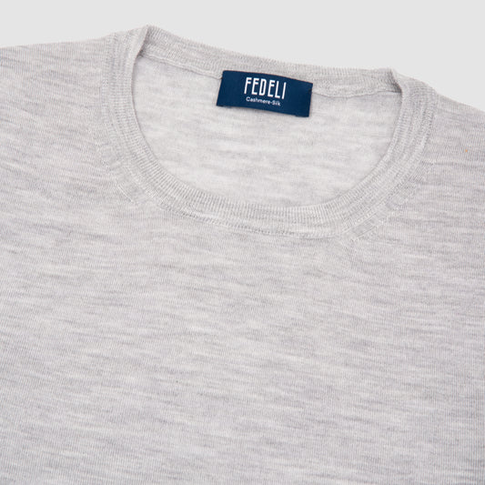 Cashmere Silk Crewneck Sweater Light Grey