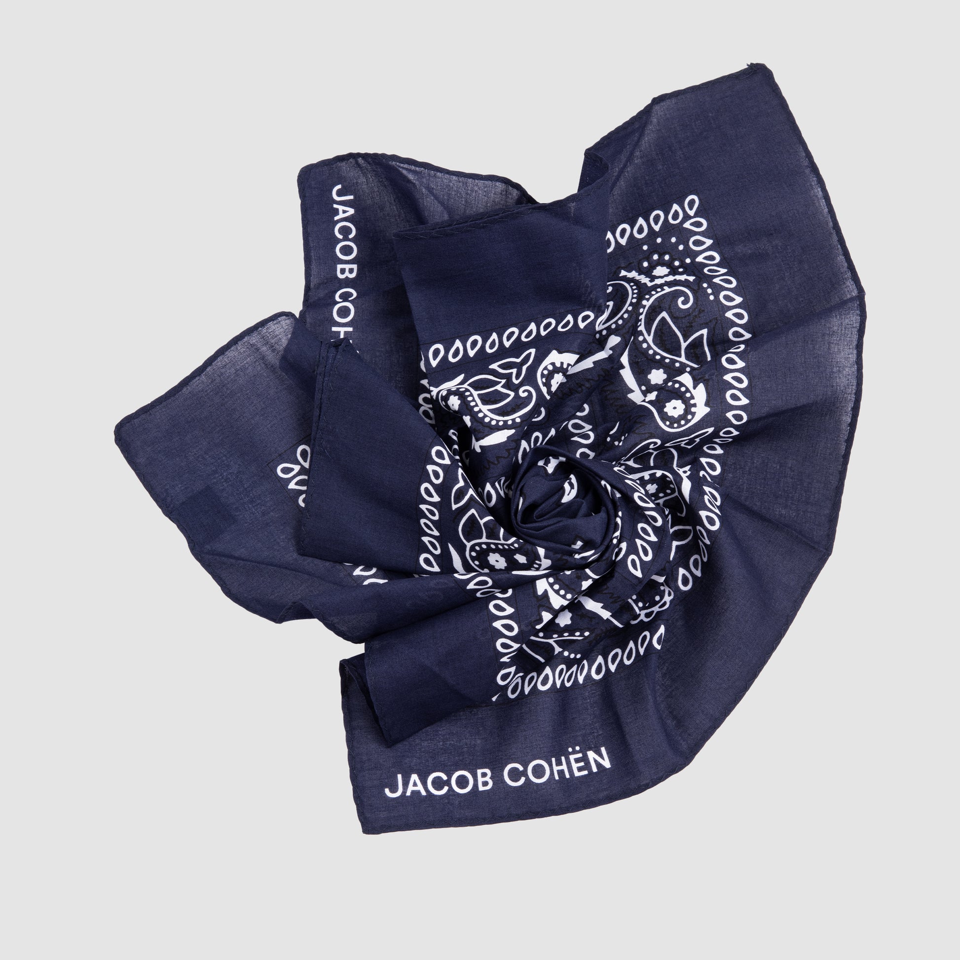 - Includes blue handkerchief with brand logo and patterned design