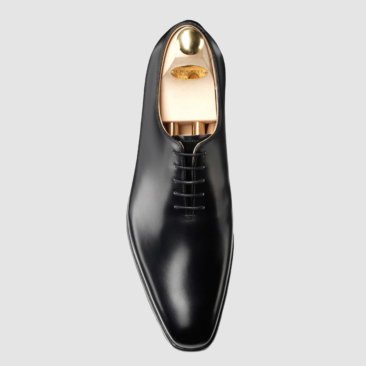 Alex, a plain fronted whole-cut oxford made from the finest black calf leather and featuring single leather soles. From the Men's Main collection.