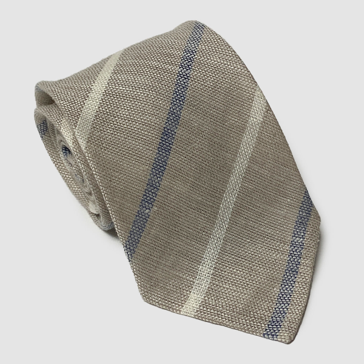 This beige striped 100% linen tie adds a perfect touch of classic style to any ensemble. Impeccably crafted for comfort and durability, this timeless piece is sure to become a wardrobe staple.