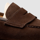 Boston, a classic penny loafer made from the finest dark brown suede leather with a single leather sole. From the Men's Main Collection.