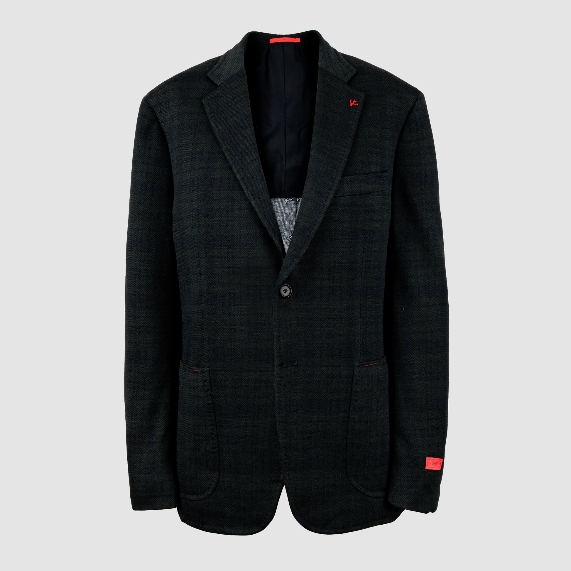 Expertly crafted with a combination of wool and silk, this jacket offers a touch of luxury and sophistication. The navy and green ovecheck pattern adds a style, while the single-breasted design offers a timeless look.