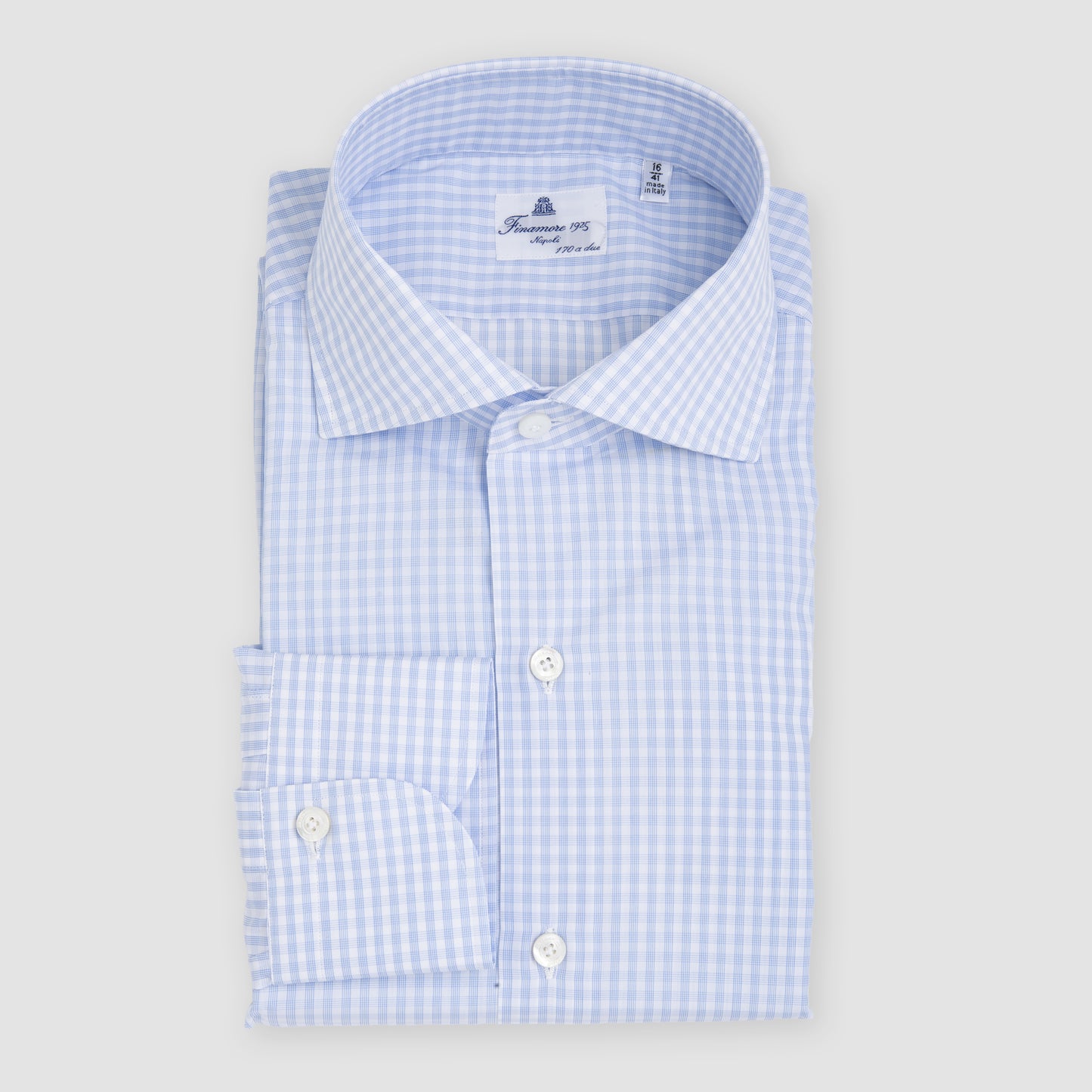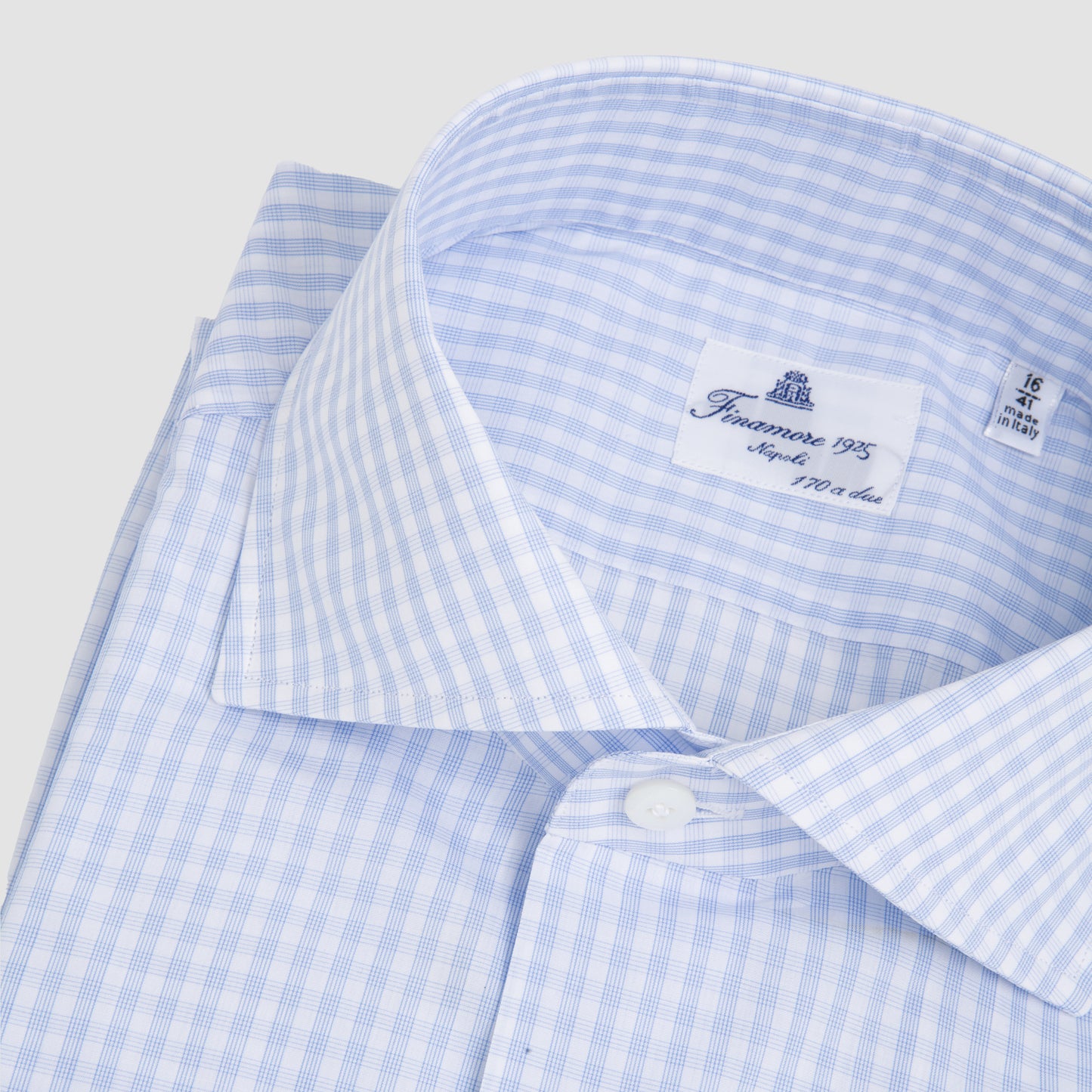 This sophisticated dress shirt from Finamore is crafted from cotton and features a refined blue and white check pattern. Tailored in the Napoli fit with the elegant Eduardo spread collar, it balances classic charm with contemporary Italian craftsmanship ideal for polished office looks or formal settings.