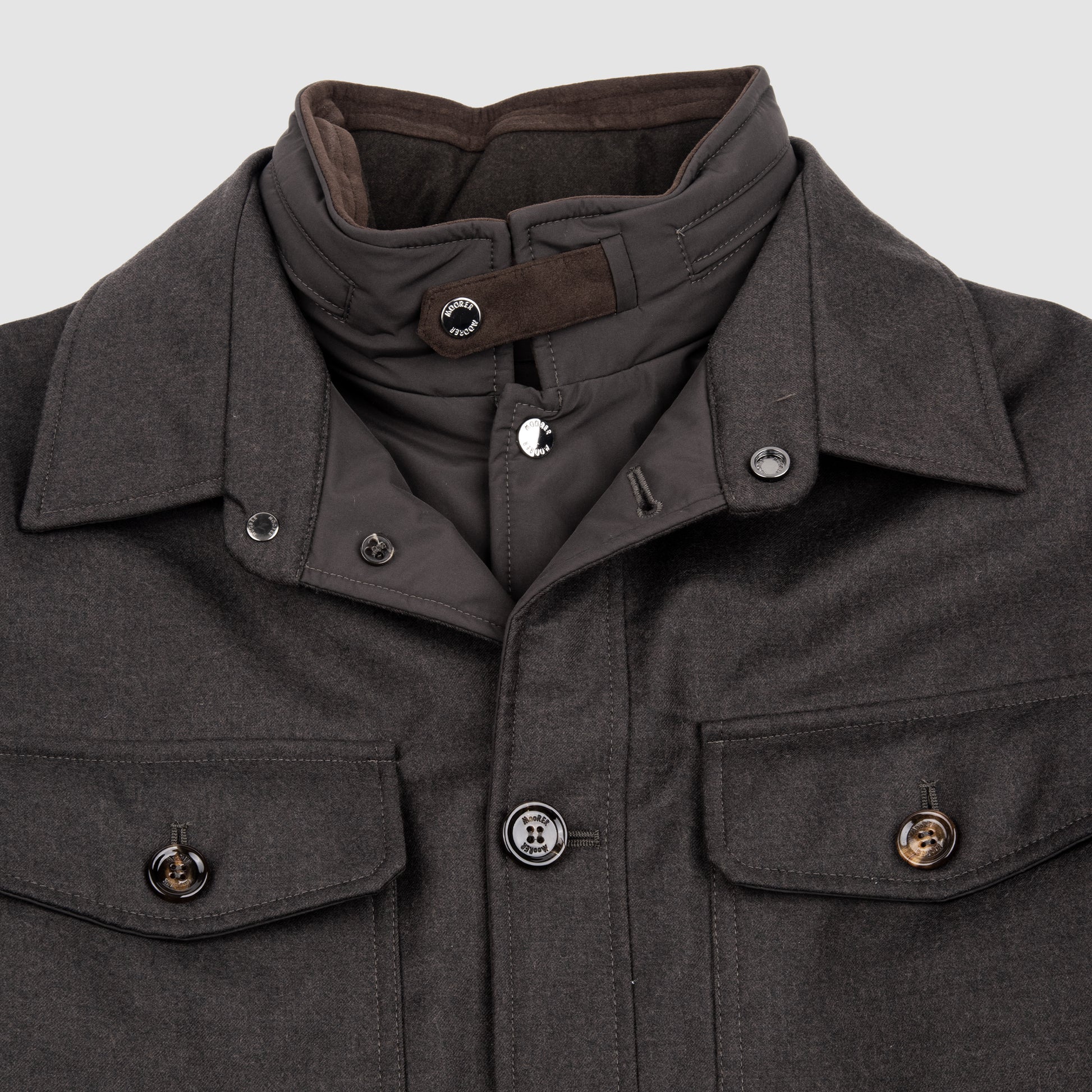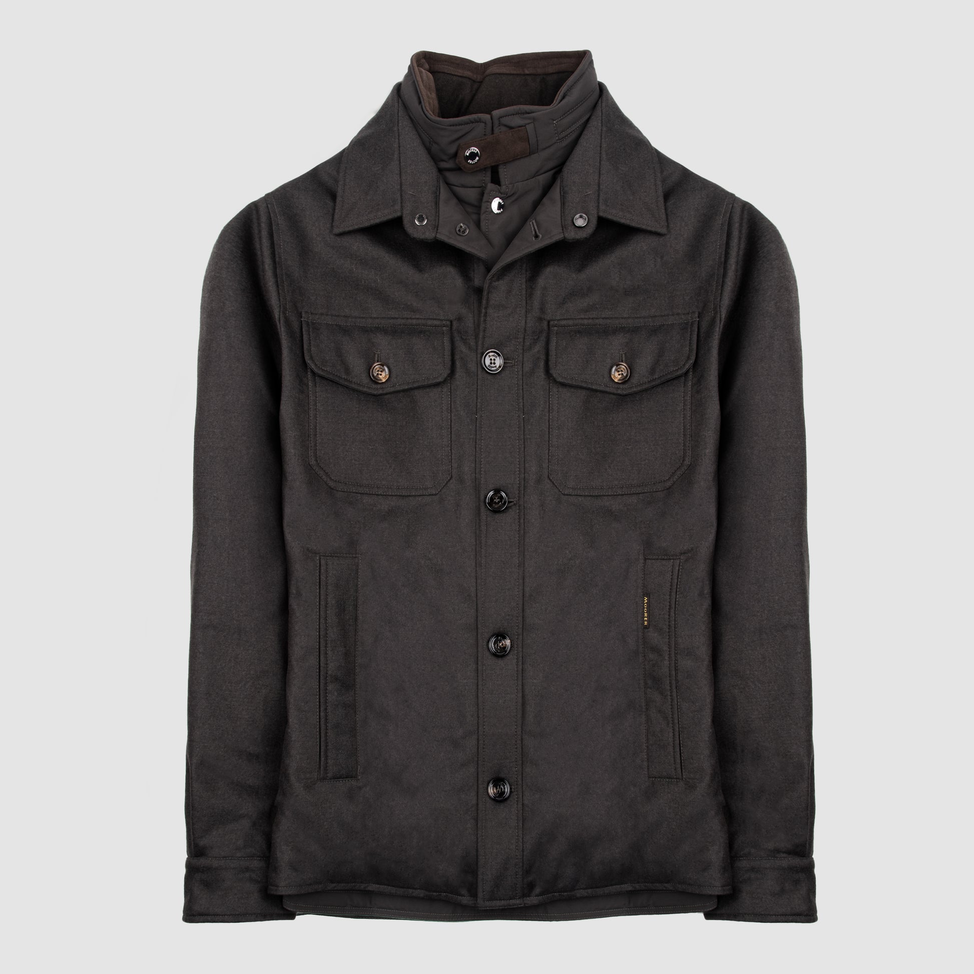 This overshirt by MooRER is a masterclass in Italian outerwear engineering, merging precision tailoring with high performance functionality. Designed with a modern, structured silhouette, this jacket is crafted from premium materials that deliver durability, softness and natural elegance. Its unlined construction enhances lightness and versatility, making it ideal for transitional seasons while maintaining a sophisticated aesthetic.