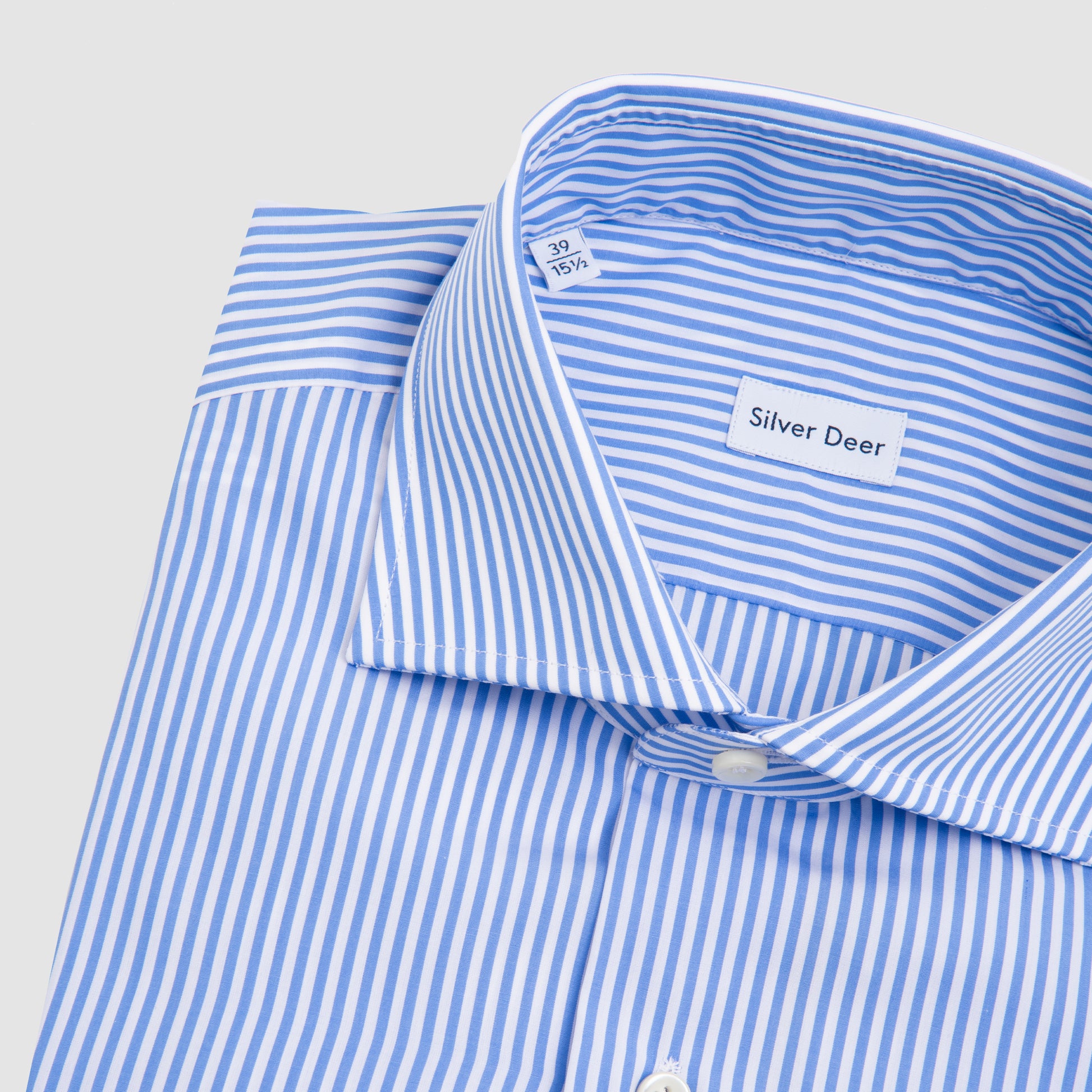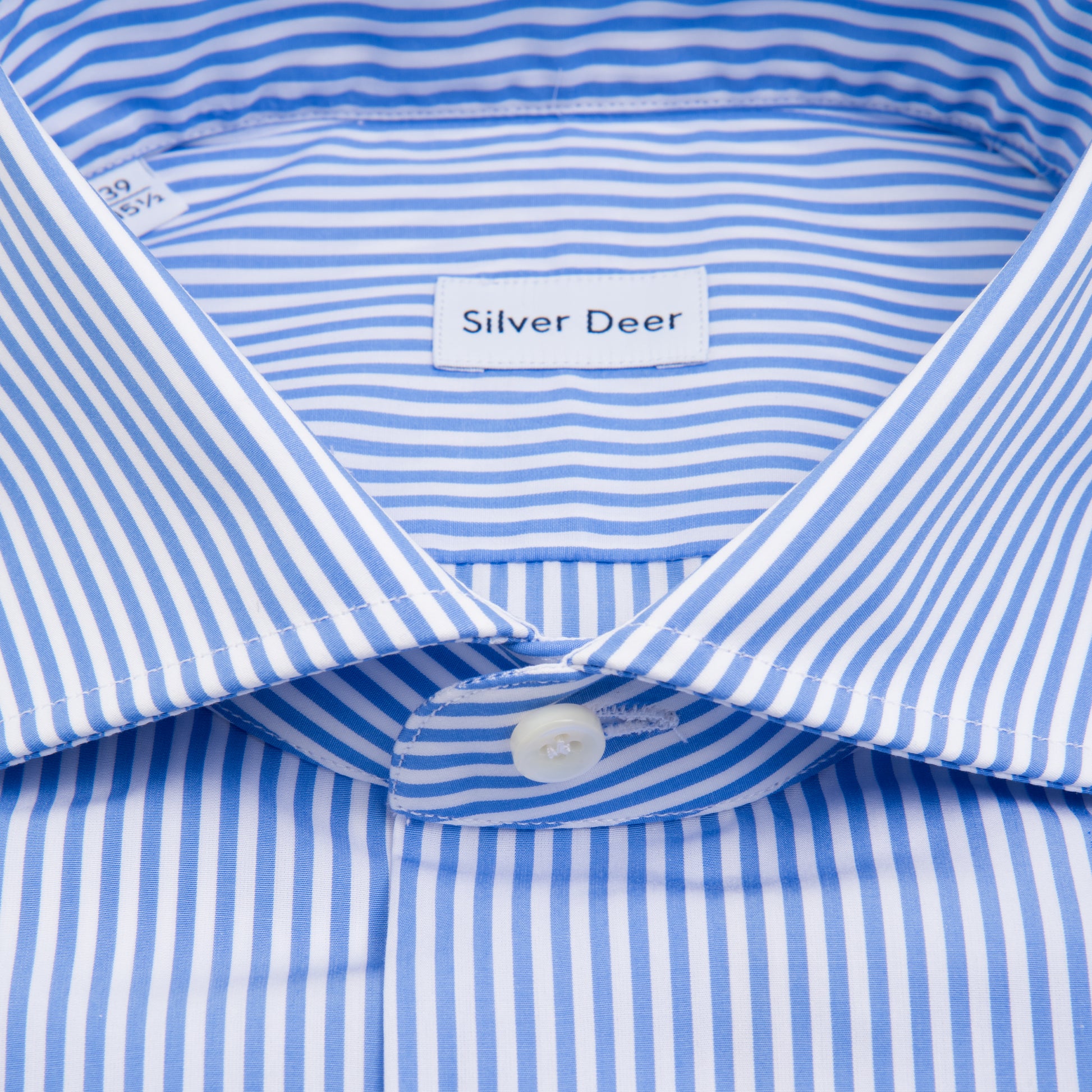 This dress Shirt from Silver Deer is a timeless wardrobe essential, ideal for both semi formal and formal occasions. Meticulously handcrafted in Italy, it reflects superior tailoring and uncompromising quality. The refined white and blue Bengal stripe pattern delivers a classic yet versatile look, making it a distinguished choice whether paired with a suit or styled more casually with tailored trousers.