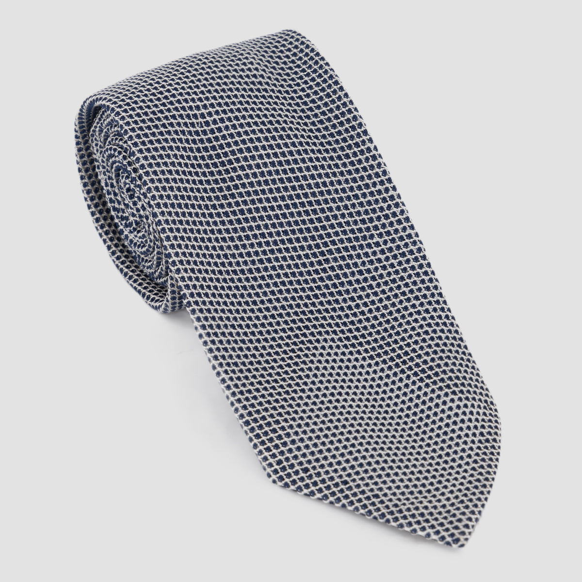 Finamore Two Tone Garza Silk Tie - Navy on White
