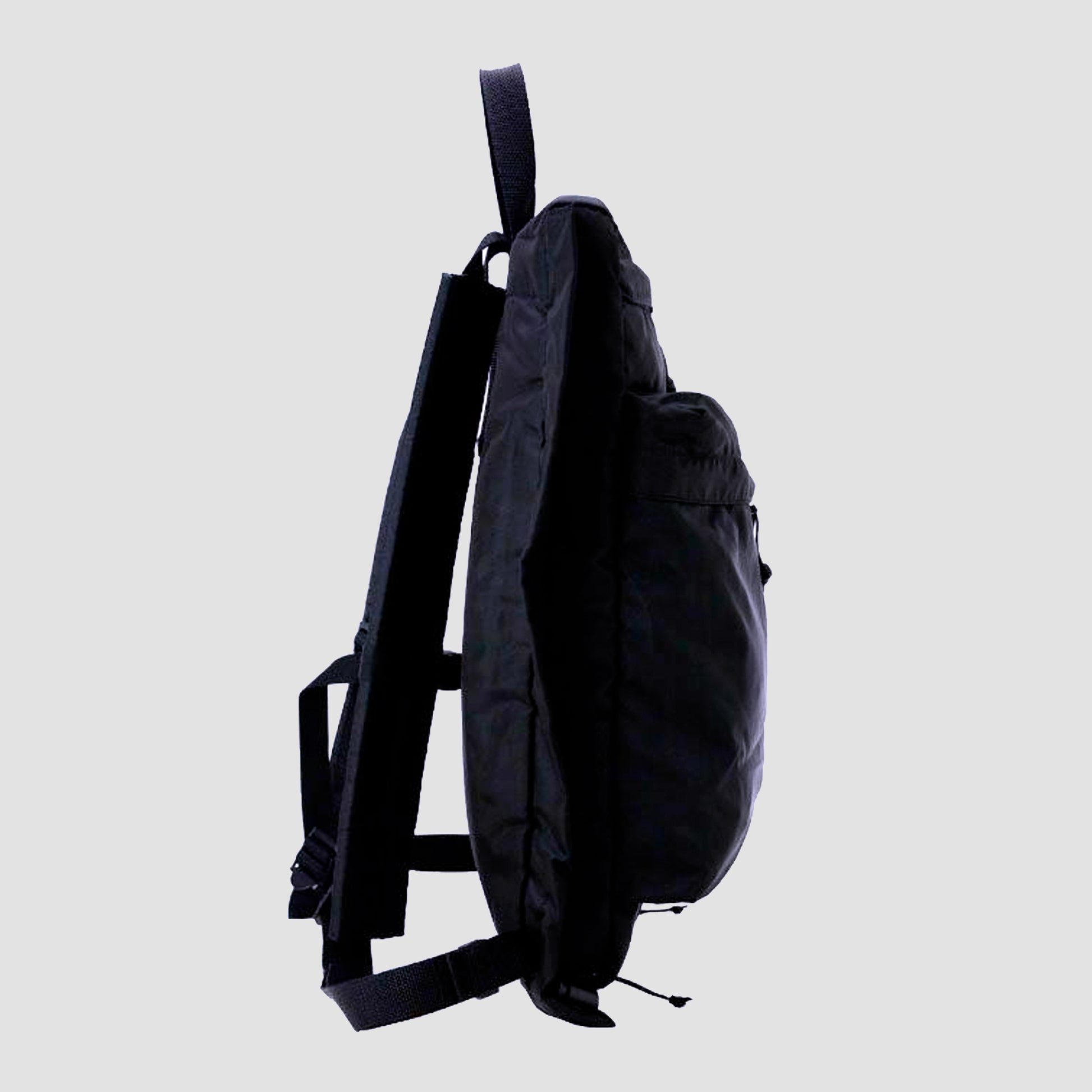 Industrial material is used for outer material, which is made of 210 denier 6 nylon high tenacity yarns. This material is usually used as a foundation material of rubber boats, etc. Therefore, unlike regular materials for clothing and bags, it is not produced to be dyed. But we dyed it on purpose to create unique shiny texture and vertical lines for a chuff impression and a further military touch.