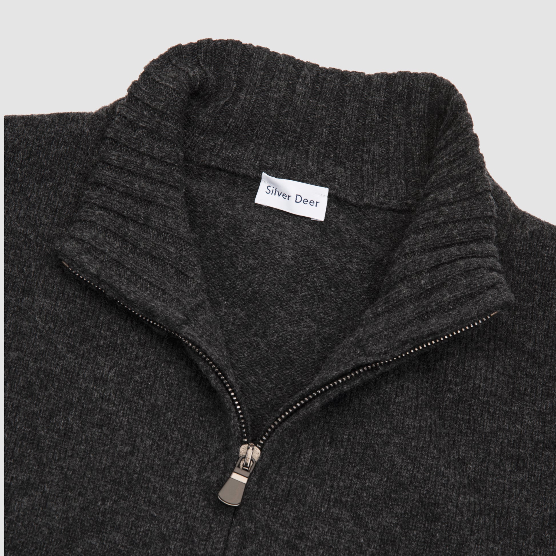Full Zip Cardigan Wool Cashmere Dark Grey Melange