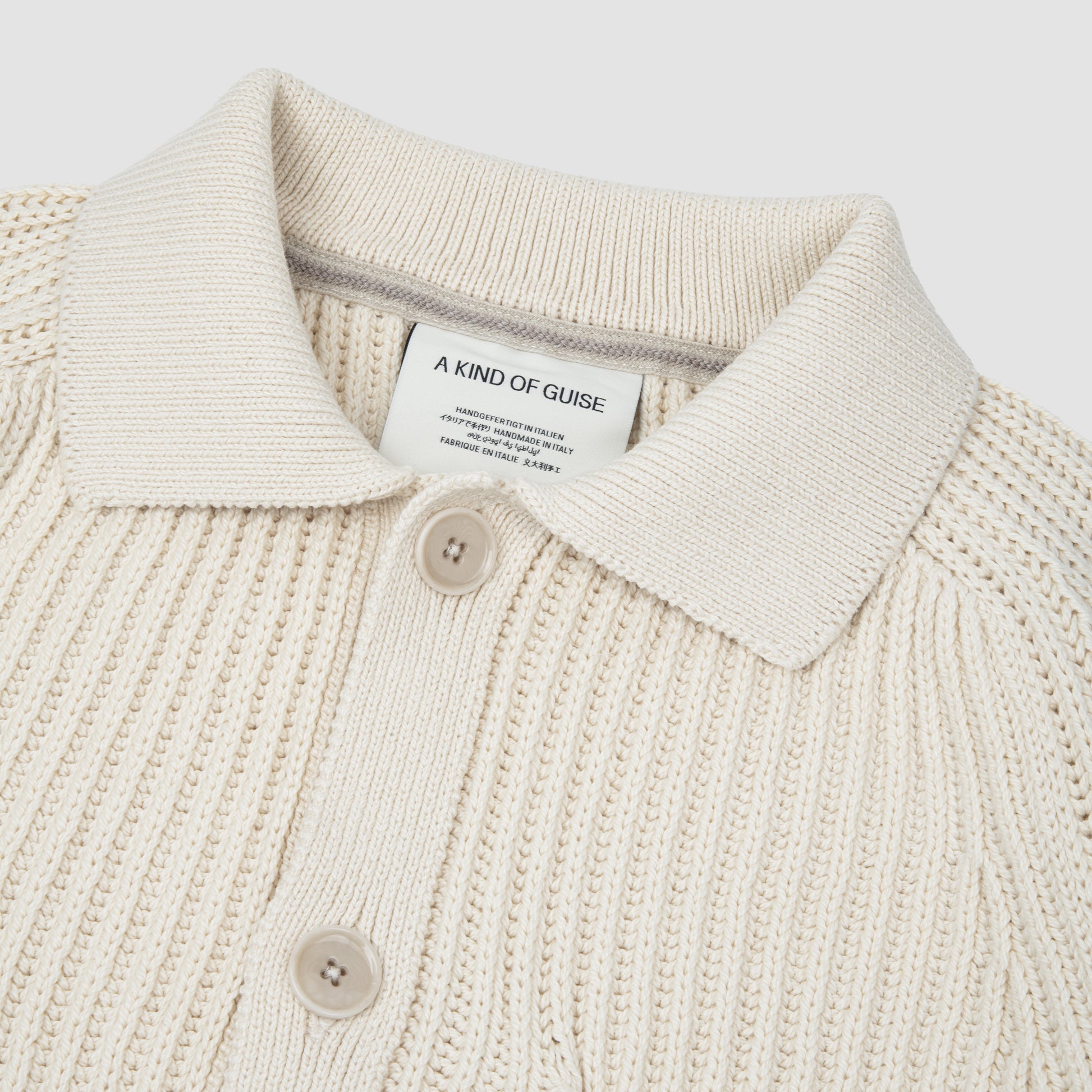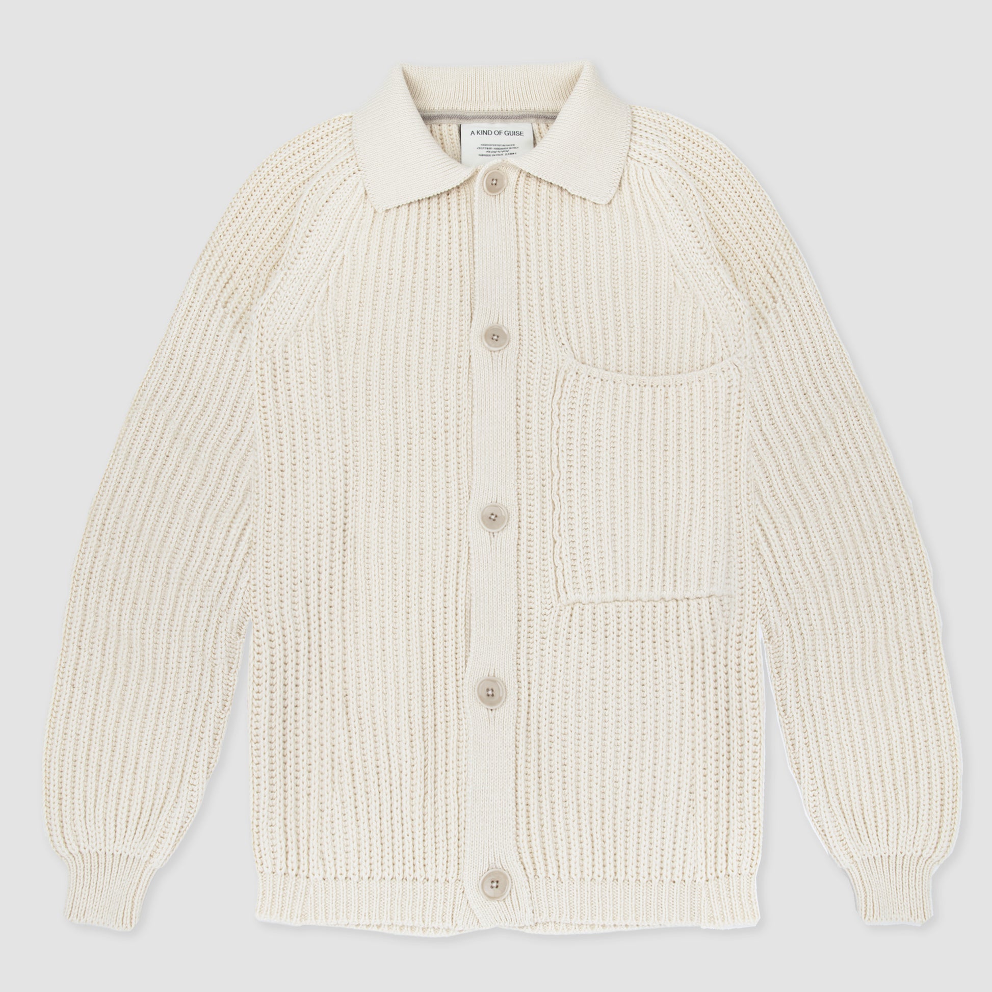 The Juhi Knit Blouson from A Kind of Guise is a refined knitwear piece that merges comfort with contemporary design. Crafted in a soft seashell toned yarn, it offers a lightweight yet structured silhouette. Subtle ribbed details and a clean zip closure emphasize its modern versatility, making it a transitional essential.