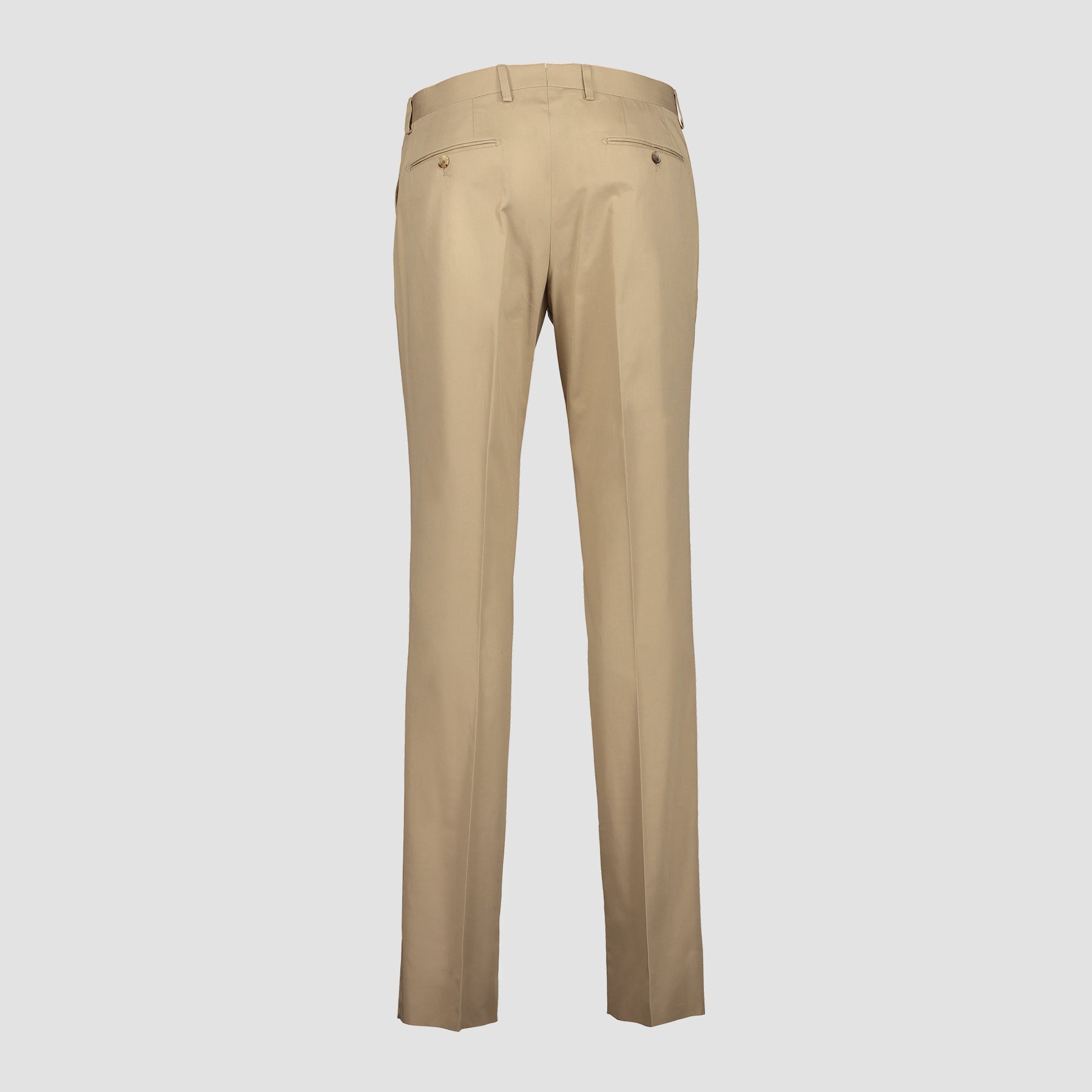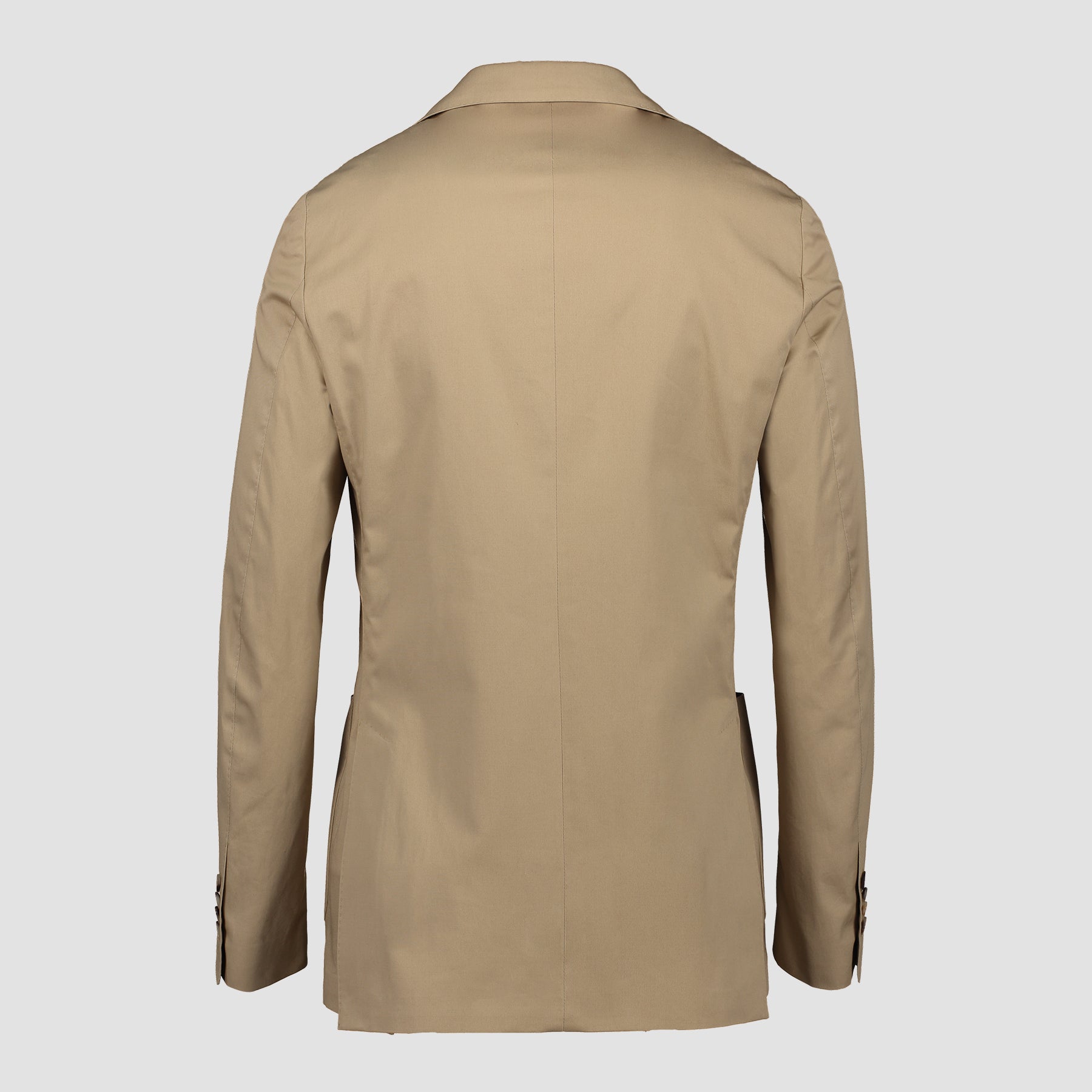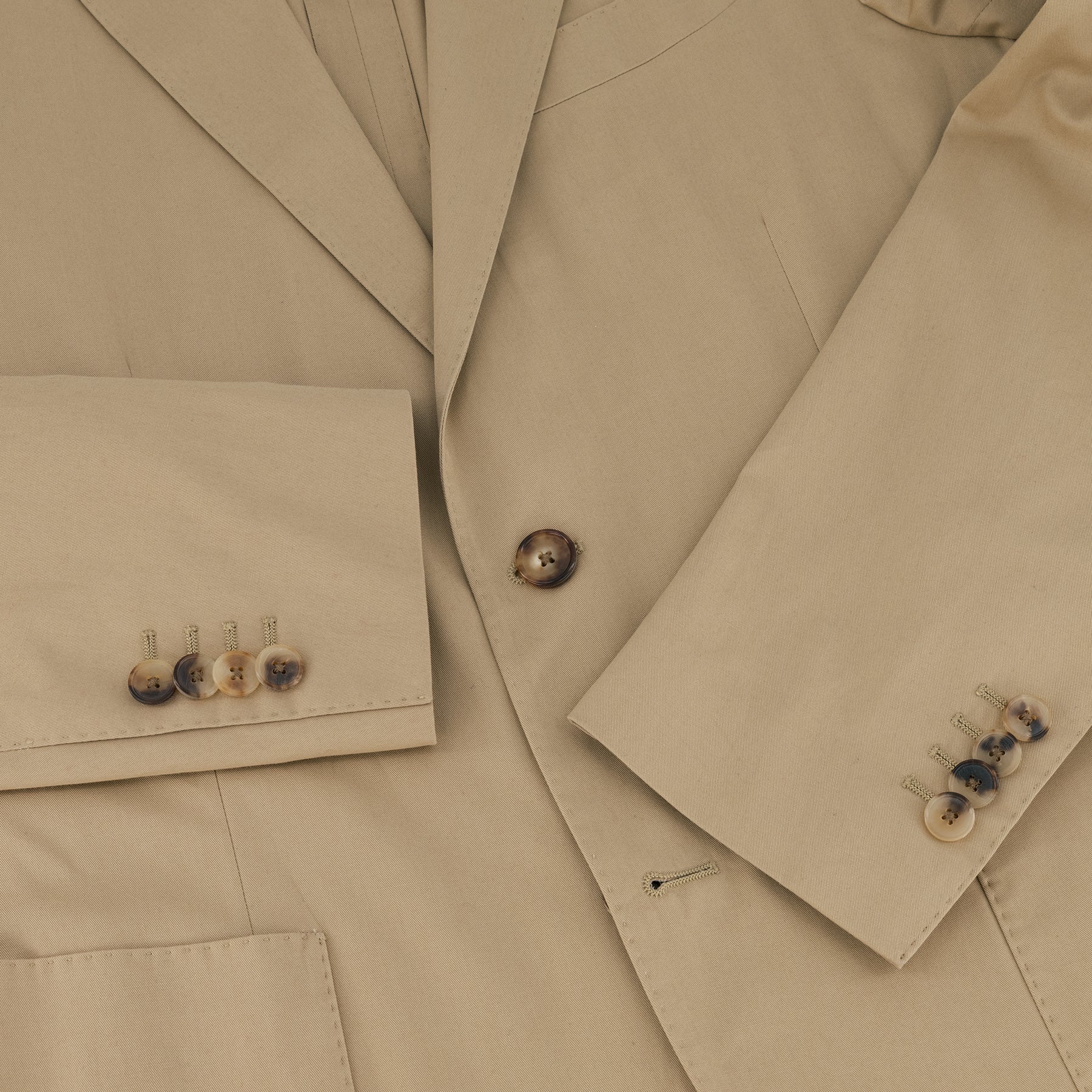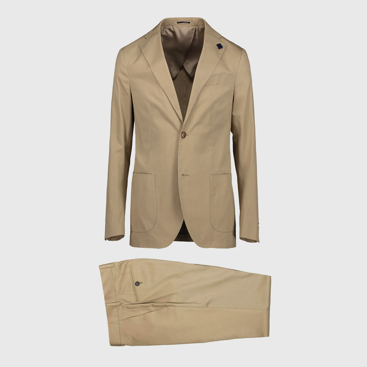 A suit crafted from a high quality cotton fabric and left unlined for increased comfort in warm summer weather.