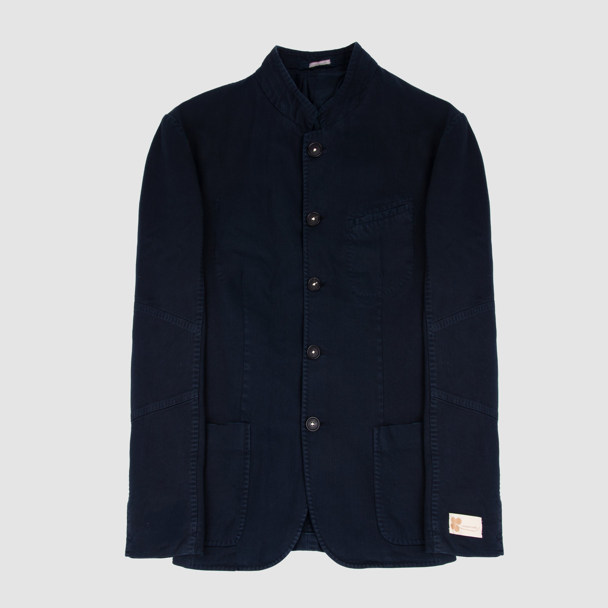 Mao Collar Cotton Jacket Dark Blue
