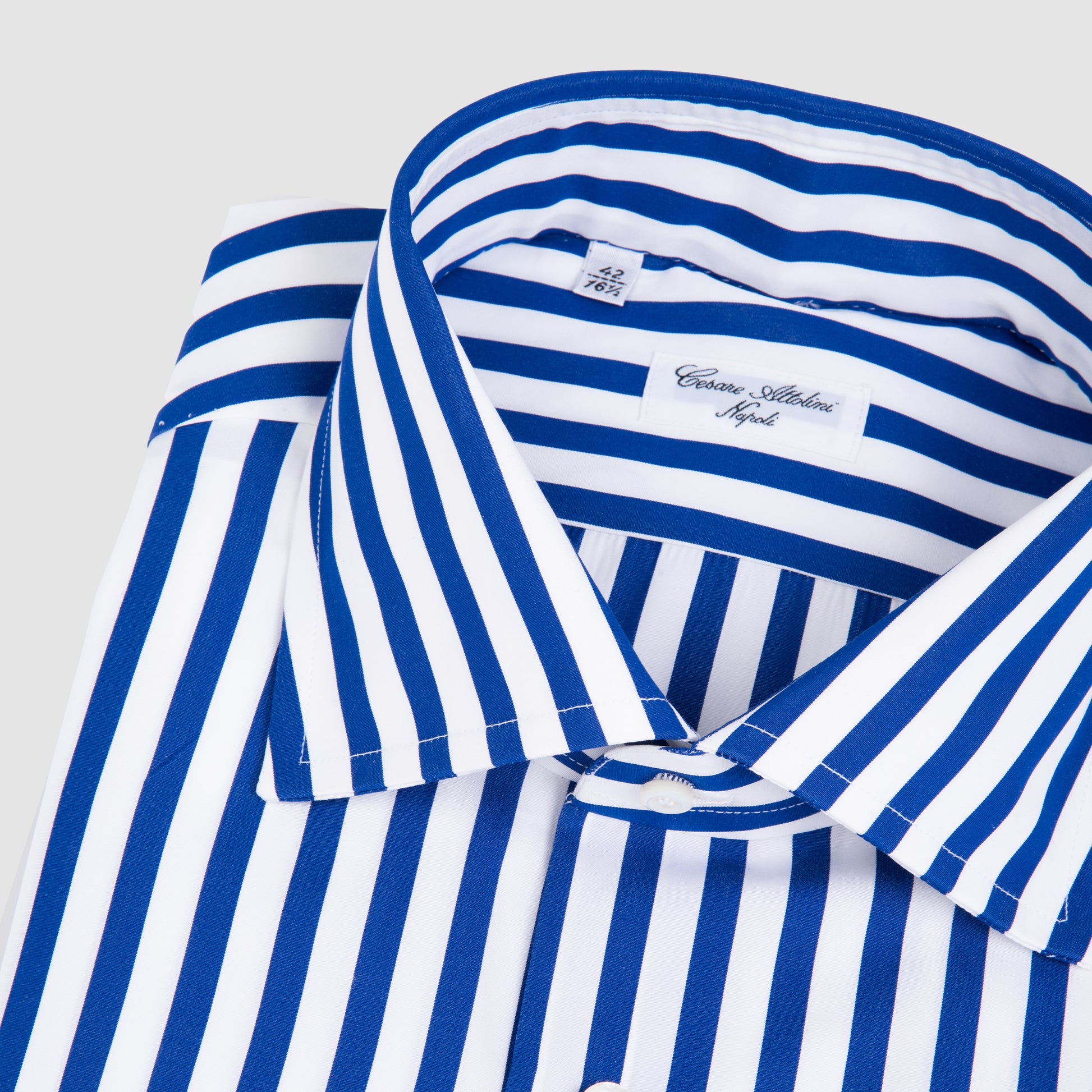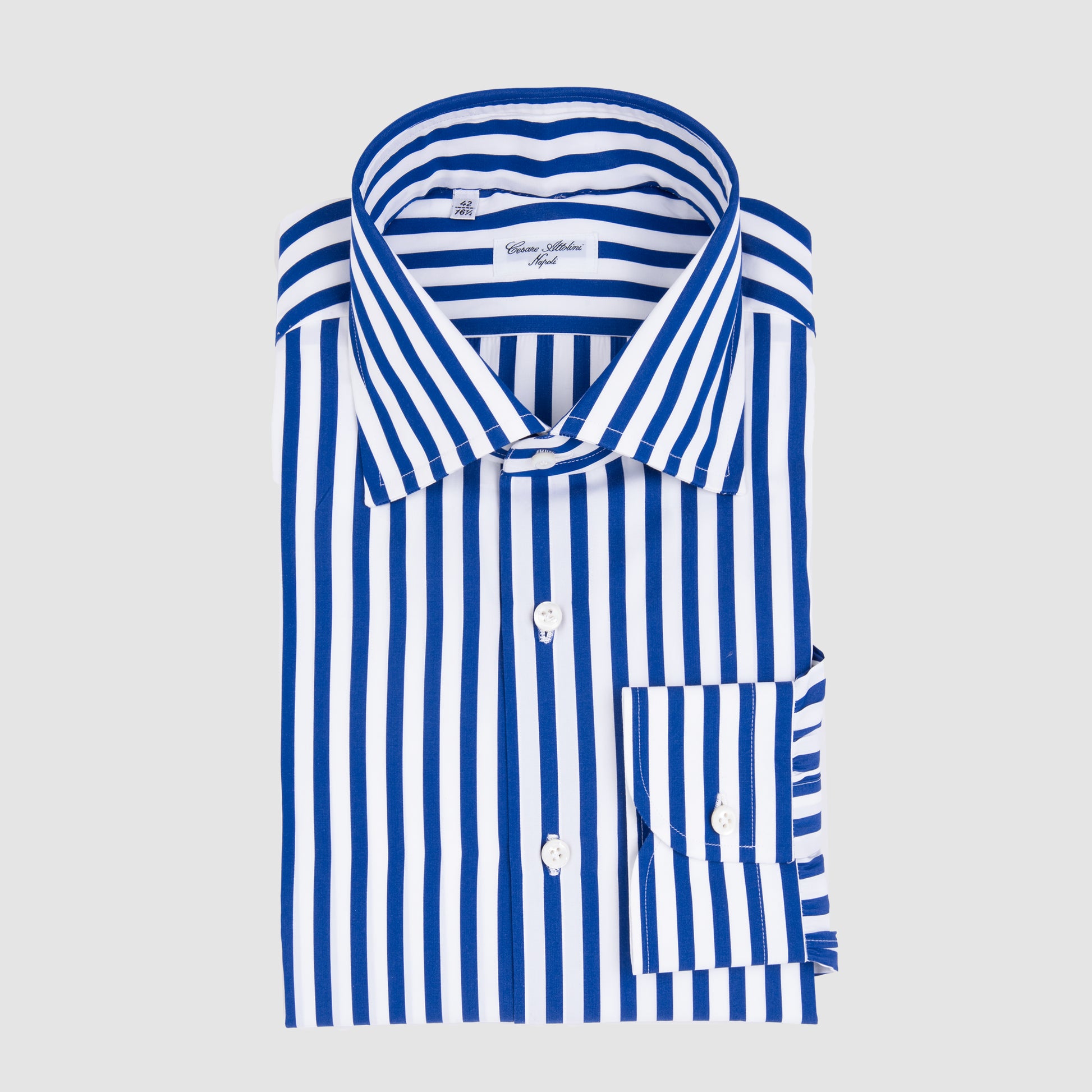 The Striped Dress Shirt with from Cesare Attolini combines refined elegance with timeless versatility. Perfect for both formal and casual occasions, it offers a balance of sophistication and comfort that defines the Neapolitan tailoring tradition. The crisp navy and white stripes add a classic yet modern touch, while the luxurious cotton fabric ensures breathability and an exceptionally soft feel. Hand made in Italy.