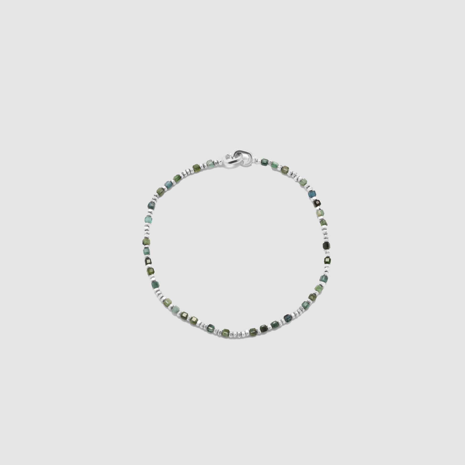 Expertly handcrafted with 925 sterling silver, the Percep Bracelet features a unique kissing closure and stunning green emerald stones. Elevate your style with this elegant and versatile accessory that exudes natural beauty and sophistication.