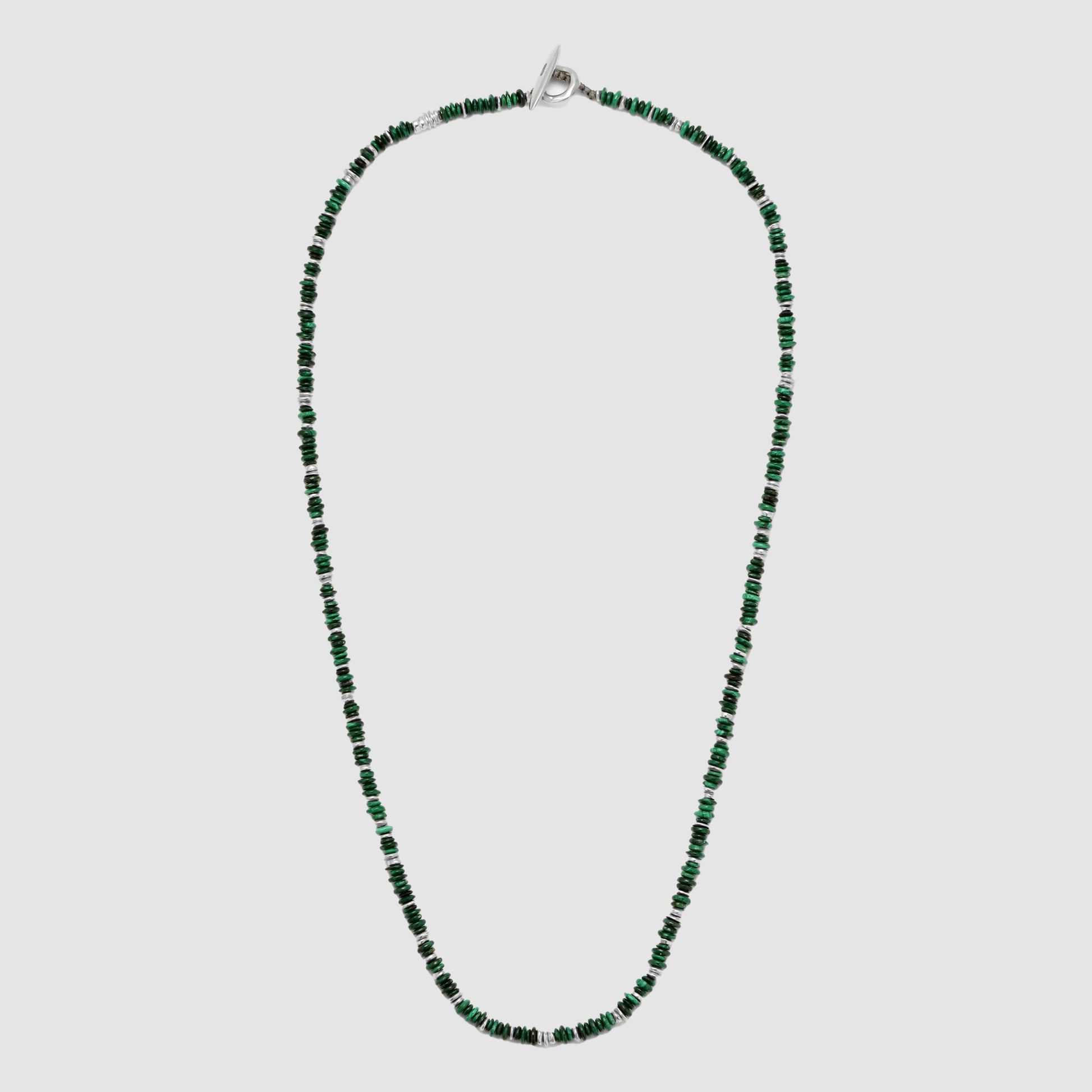 Elevate your style with the Pillon Necklace/Bracelet, crafted from malachite and solid 925 sterling silver beads. Each piece showcases the unique hues and patterns of the gemstones, ensuring a distinctive accessory. Versatile in design, it can be elegantly worn as a necklace or wrapped as a bracelet, adding refined sophistication to any ensemble.