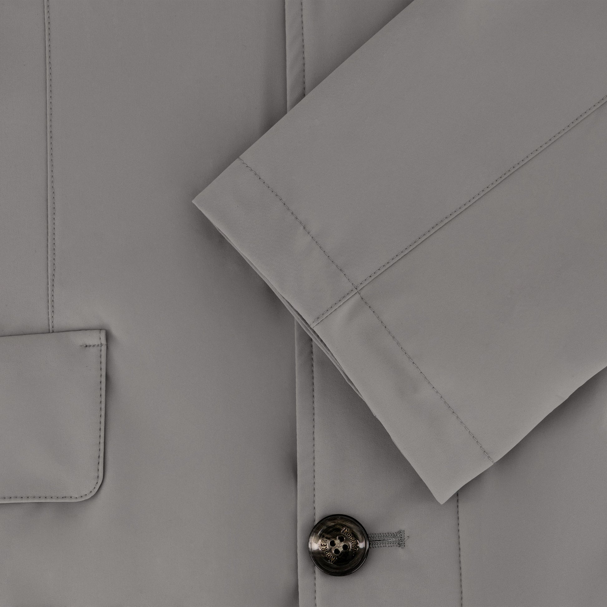 Lightweight technical fabric with a subtle heathered texture and natural resistance to creasing. Clean, tailored silhouette with a concealed front that keeps the line uninterrupted. Designed for everyday use and easy layering.