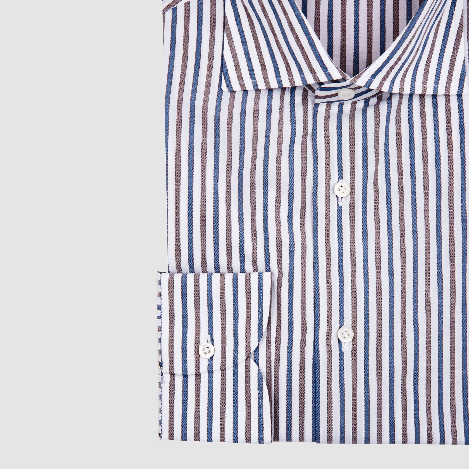 This Sport Shirt from ISAIA combines understated elegance with everyday comfort. Crafted from premium cotton, it features a refined stripe pattern in taupe and blue, offering a sophisticated palette that transitions seamlessly from work to weekend.