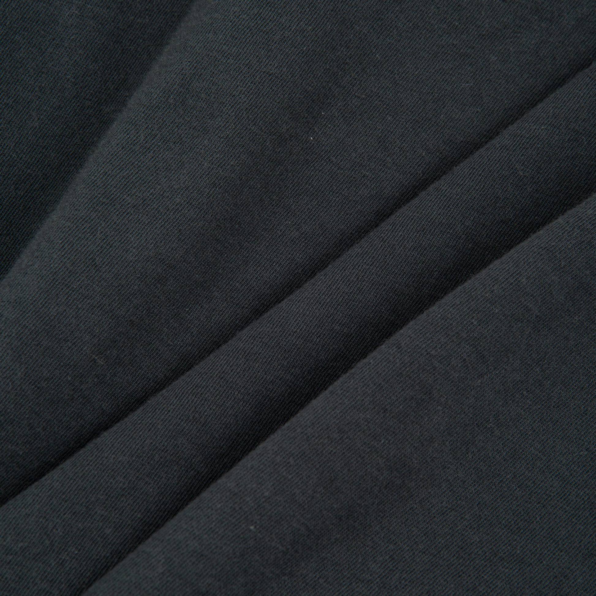 Short sleeve crew with binded neck. Lightweight Jersey is an extremely soft knit made by specially treating the cotton fibers before they are spun into a yarn. This fabric breathes well and has a nice drape.