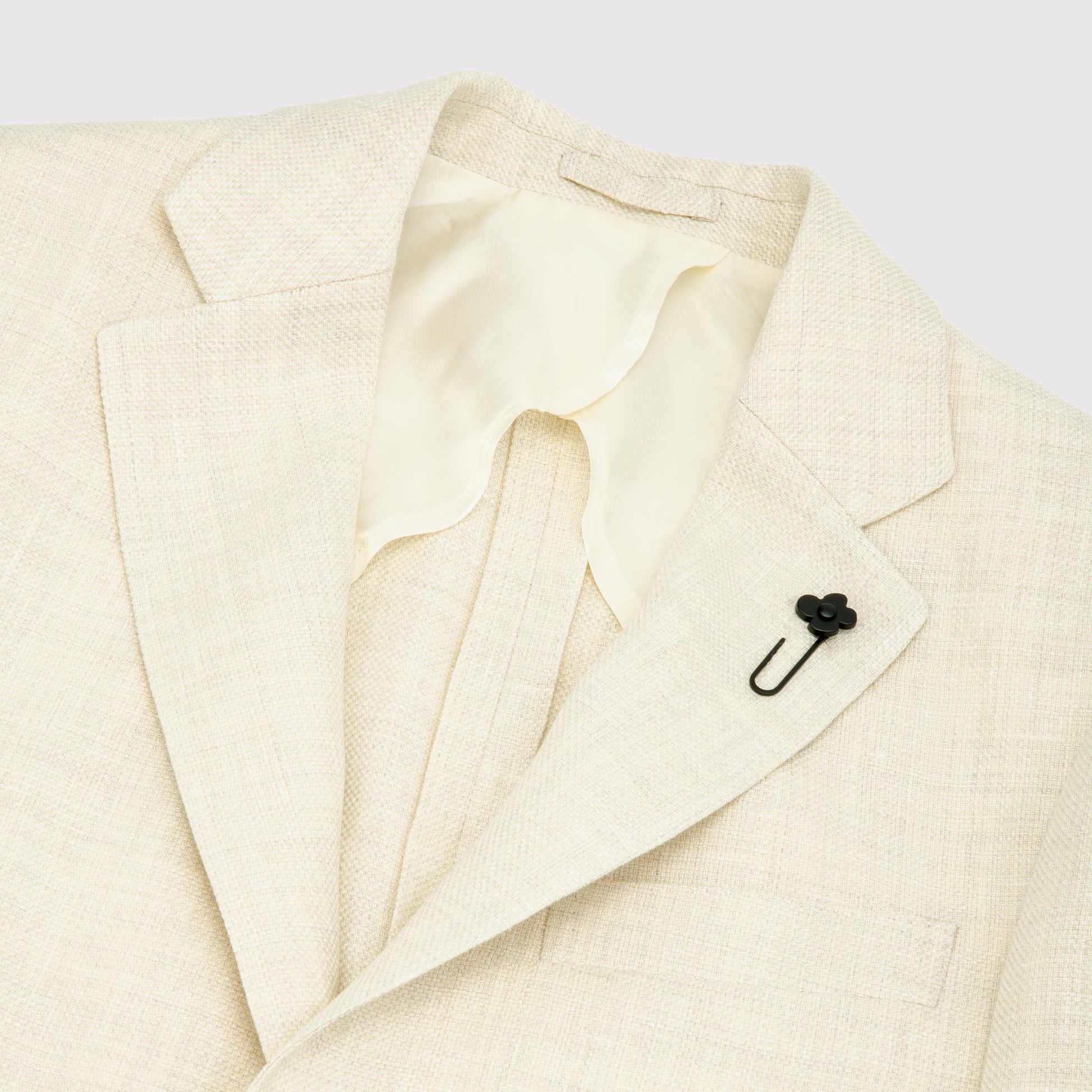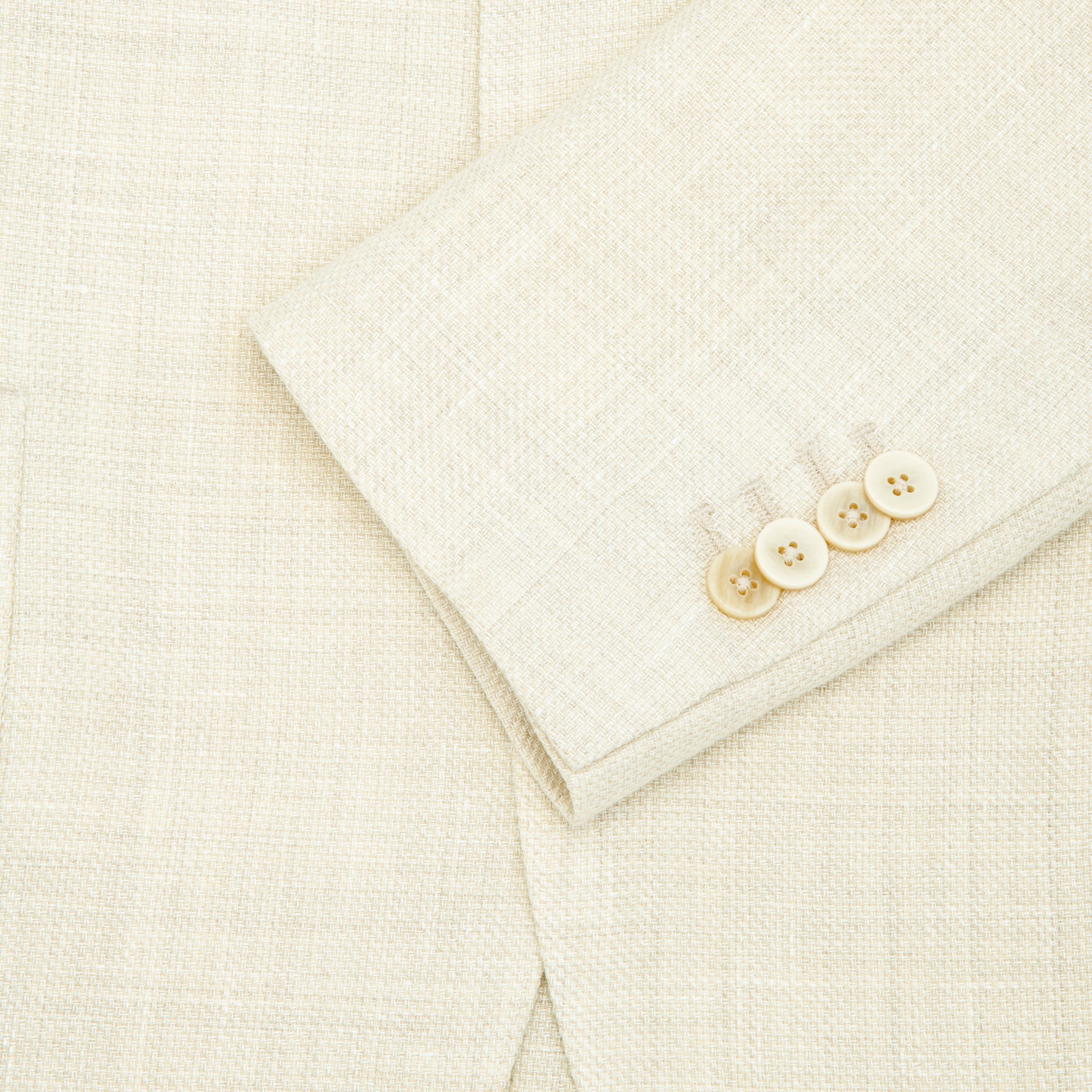 This jacket, made of a luxurious wool and linen blend. The cream color adds a touch of elegance, while the solid construction provides long-lasting wear. Perfect for any occasion, this jacket combines style and durability for a timeless look.