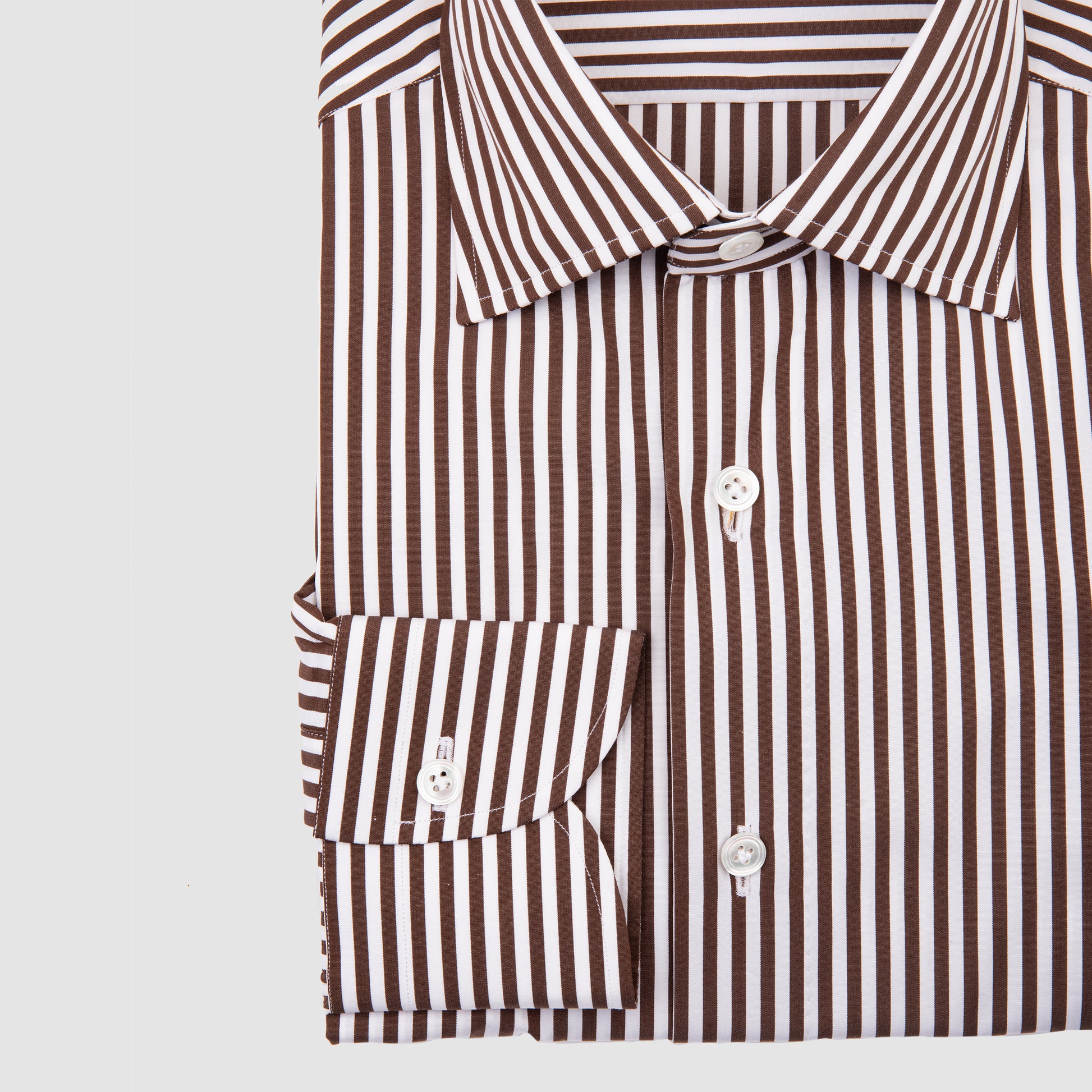 This dress shirt is crafted from cotton for a breathable and comfortable wear. Handcrafted, it reflects the brand’s dedication to artisanal excellence. Its understated stripe pattern and natural texture make it an ideal for everyday wear.