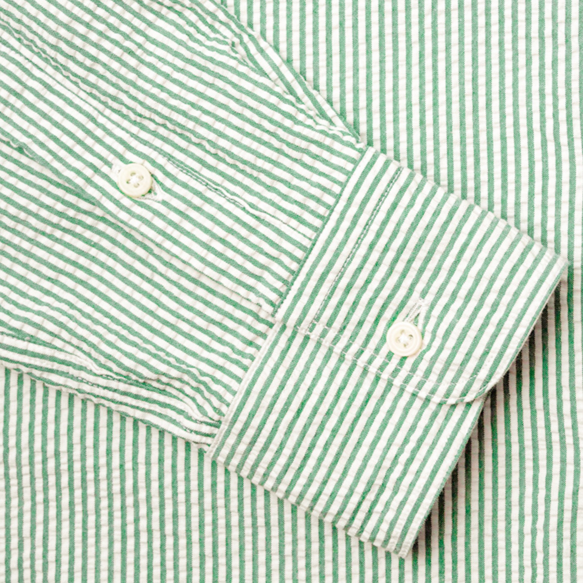 This classic green and white seersucker shirt from Gitman Vintage is a lightweight staple designed for warmer weather. Timeless and versatile, it works just as well worn untucked and casually as it does styled with a sports jacket for a more considered, formal look.