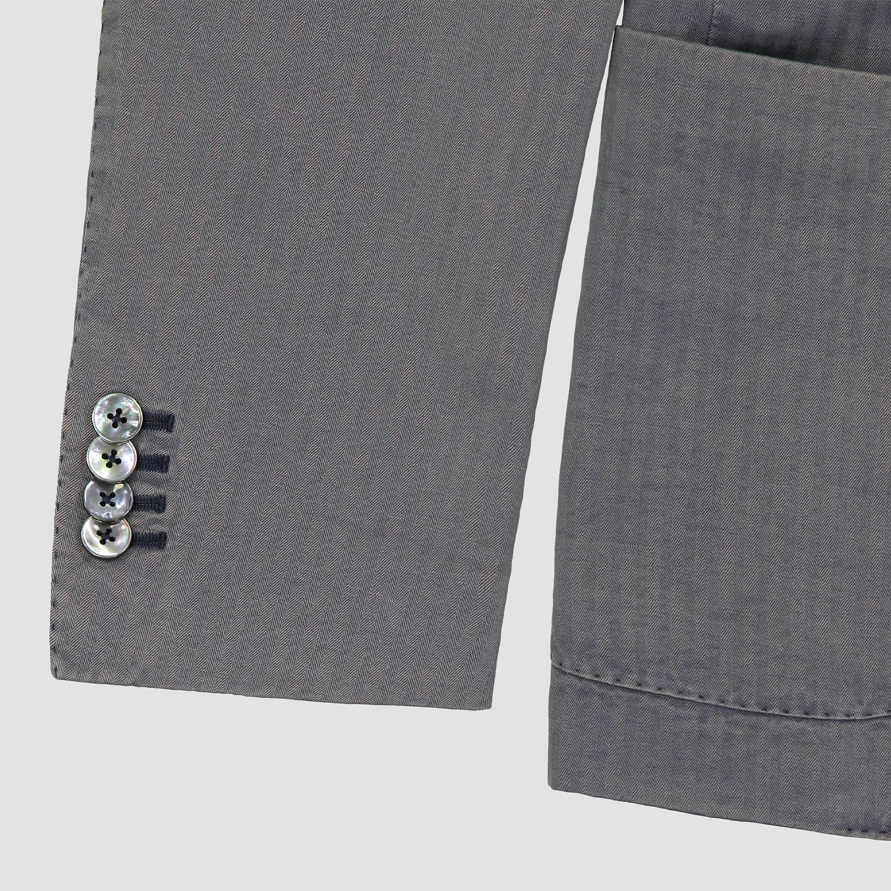 The ART329 is a single-breasted casual jacket crafted in a soft herringbone cotton linen cloth. The fit is regular, it has two patch pockets and double back vent. The construction is very light, and it is unlined.