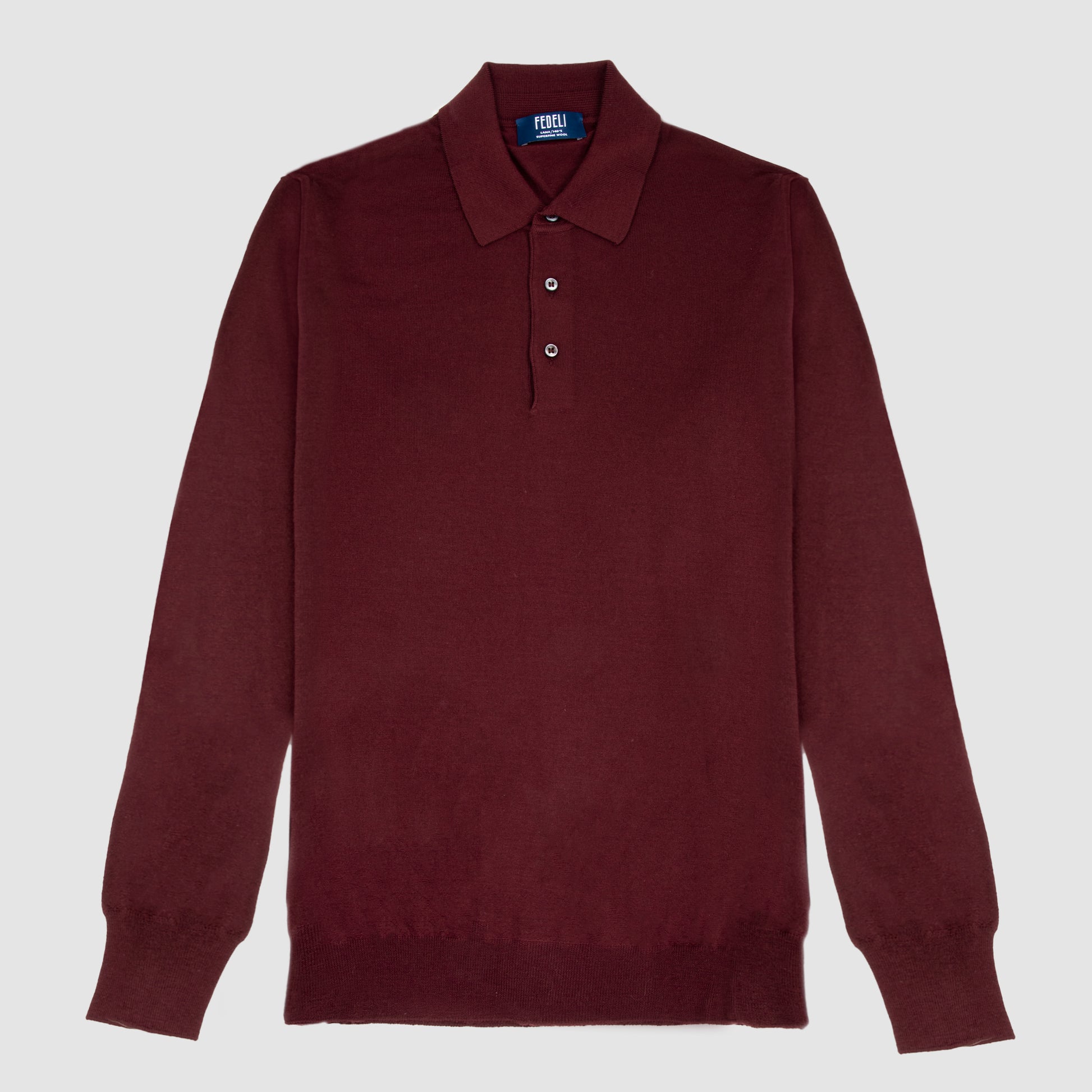 This Long Sleeve Polo by Fedeli personify refined Italian craftsmanship and effortless sophistication. Knitted from premium virgin wool, this polo combines the structure of a classic shirt with the softness and comfort of a fine sweater. The burgundy tone enhances its timeless appeal, while the tailored fit and ribbed cuffs provide a polished silhouette. Perfect for layering or wearing on its own, it transitions seamlessly from casual weekends to smart gatherings, showcasing Fedeli’s dedication to quality and understated elegance.