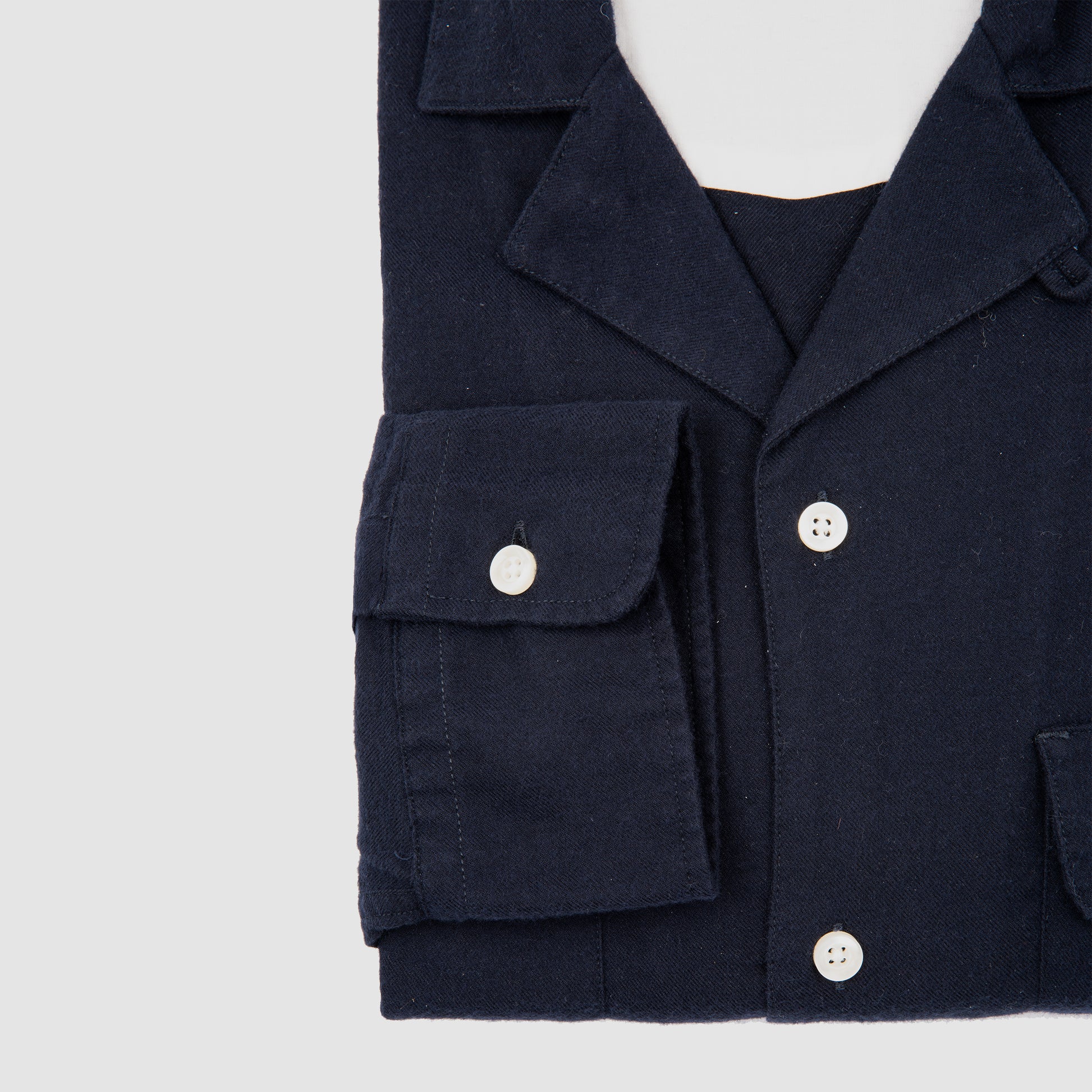 This Sport Shirt in dark navy embodies casual refinement with utilitarian detailing. Crafted from soft cotton twill, it features a relaxed silhouette complemented by two functional chest pockets that enhance its versatile character. Perfect for layering or wearing on its own, this shirt strikes the balance between everyday ease and understated elegance.