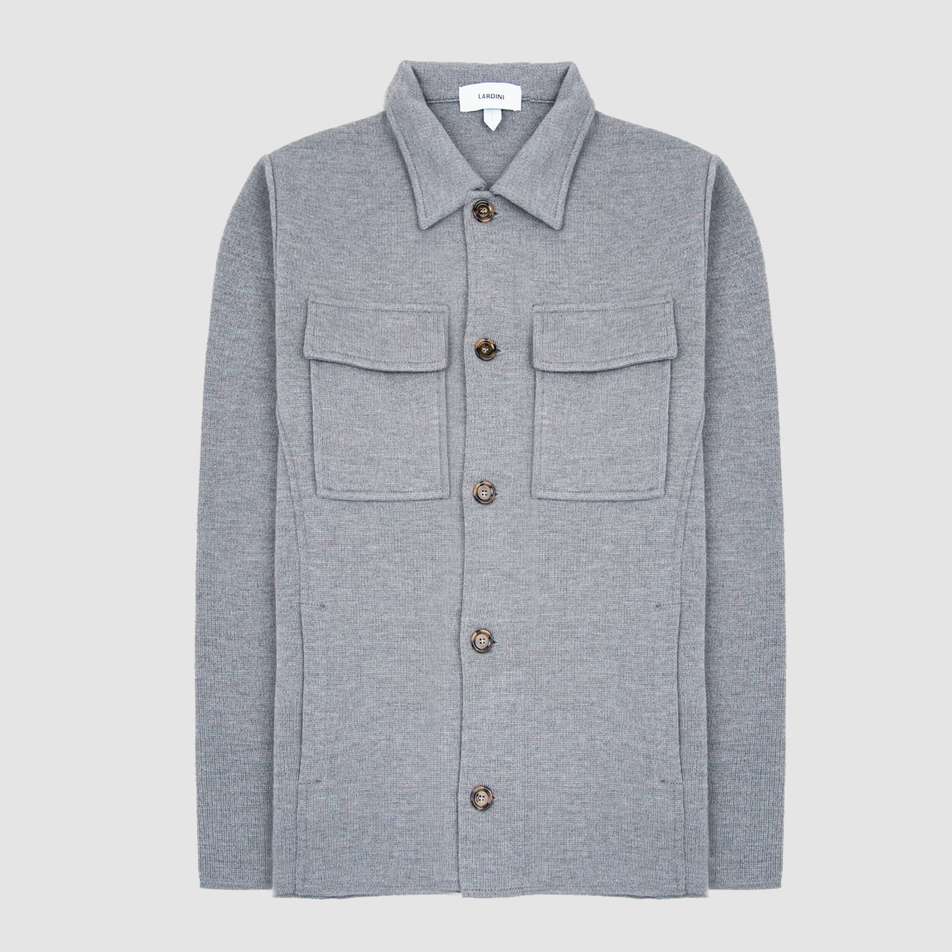 This Lardini overshirt is a refined interpretation of modern Italian elegance, crafted in Italy from 100% virgin wool for exceptional softness and natural warmth. Defined by its clean lines and understated structure, it features a classic collar, a button-front closure, and practical chest patch pockets that enhance its contemporary appeal. The finely balanced design allows it to function effortlessly as a lightweight jacket or a polished layering piece. Impeccable craftsmanship and premium materials come together to create a versatile garment that embodies comfort, sophistication, and timeless style.