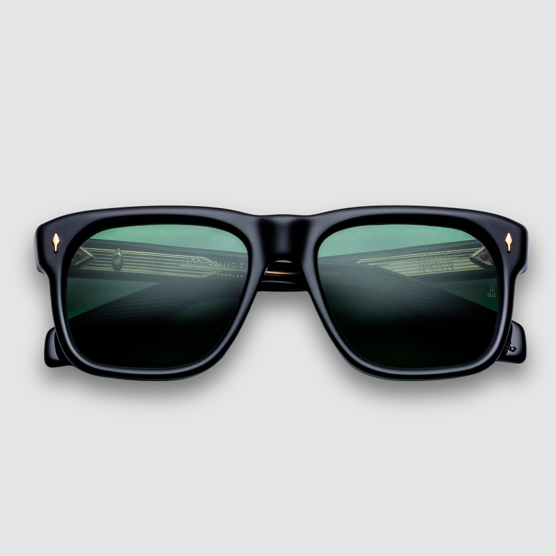 - Black 10mm cured cellulose acetate frame custom double laminated acetate temples and green lenses