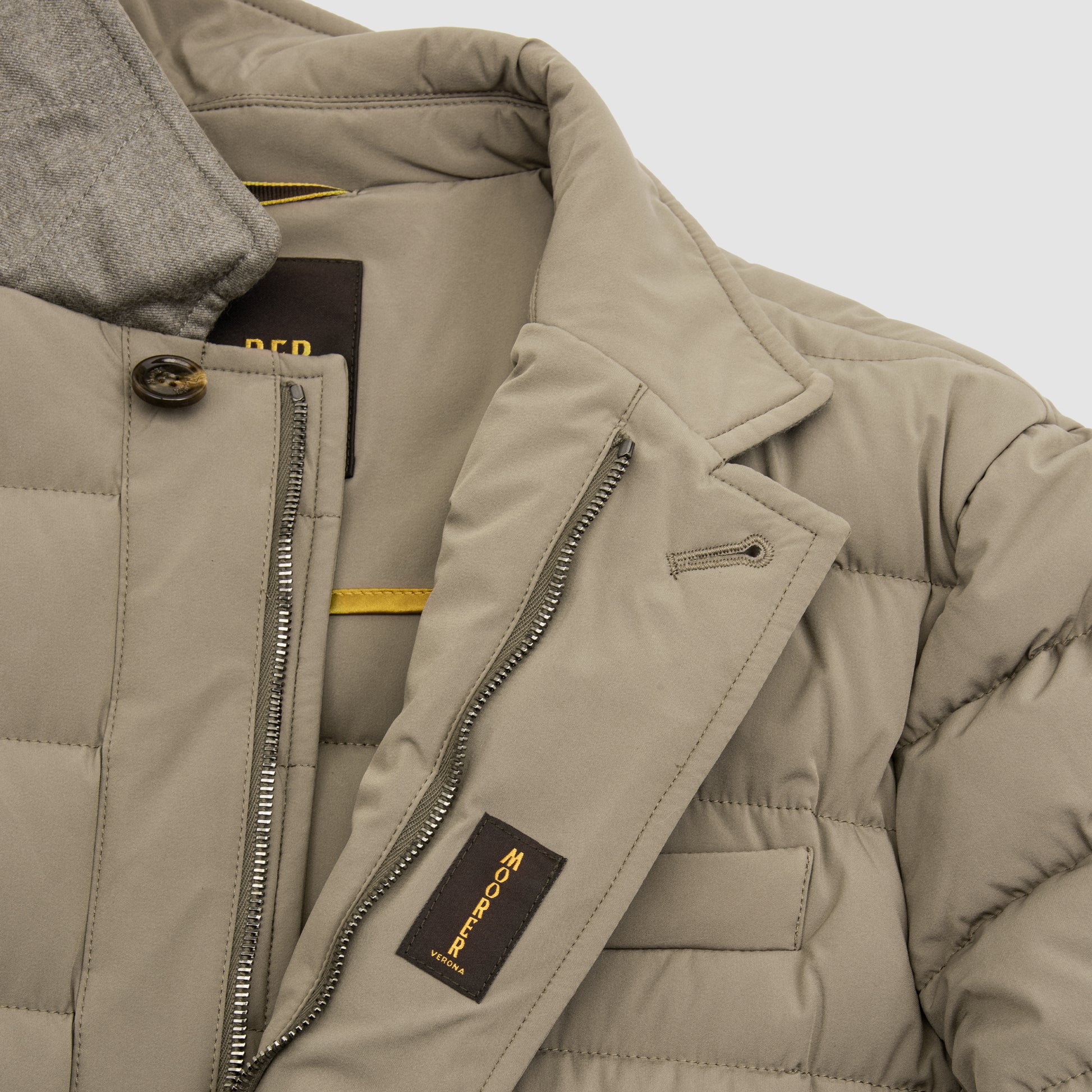 This Jacket by MooRER is a refined outerwear piece that blends sophisticated Italian craftsmanship with functional performance. Tailored in a nut-brown tone, this jacket is constructed from premium technical fabric, offering water-repellent properties and lightweight durability. The goose down padding ensures exceptional warmth without compromising comfort, while its clean silhouette provides effortless versatility for both urban and travel settings.