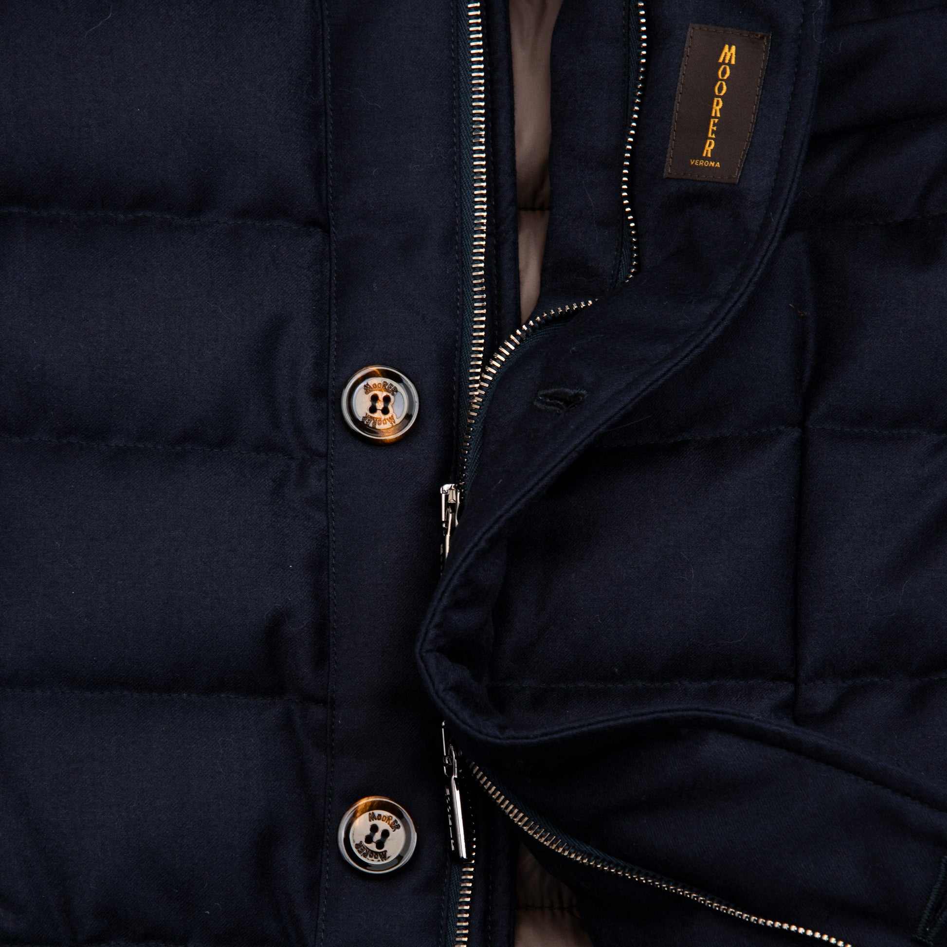 This Jacket from MooRER exemplifies the brand’s refined approach to outerwear, balancing contemporary style with functional performance. Crafted in Italy from premium virgin wool and cashmere, it features a sleek silhouette with a water-repellent finish, ideal for transitional weather.